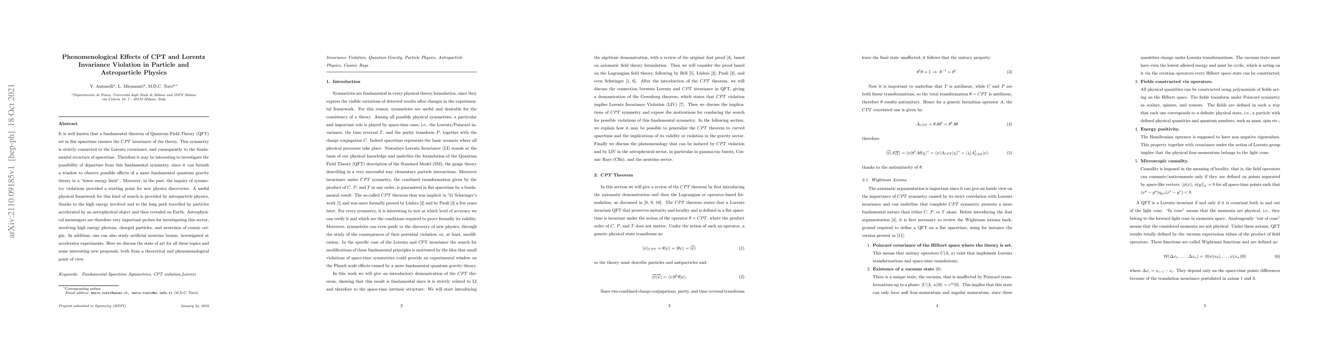 This paper explores the potential violations of CPT and Lorentz invariance in particle and astroparticle physics, suggesting that deviations could reveal insights into quantum gravity. It highlights the role of astrophysical messengers and accelerator experiments in probing these fundamental symmetries.