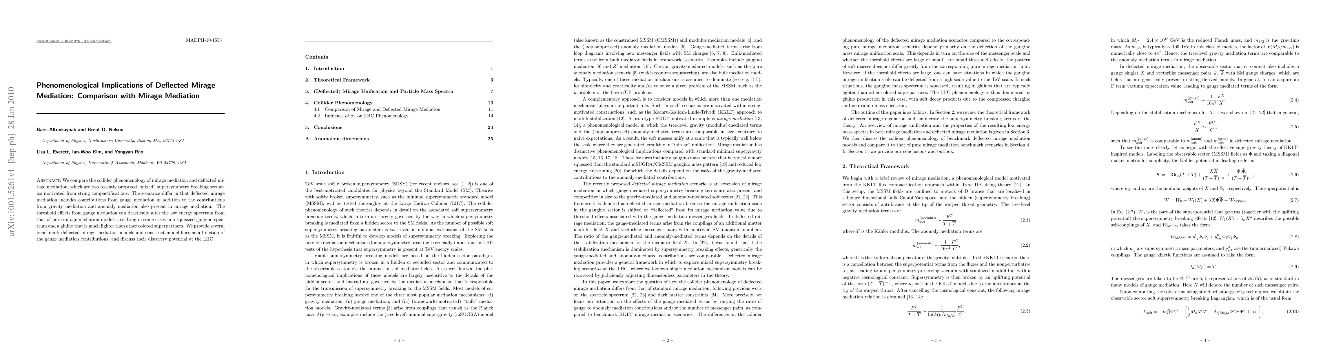 This paper compares the collider phenomenology of mirage mediation and deflected mirage mediation, two "mixed" supersymmetry breaking scenarios. Deflected mirage mediation includes gauge mediation contributions, which can significantly alter the low-energy spectrum, potentially resulting in a lighter gluino. The study provides benchmark models and discusses their discovery potential at the LHC.