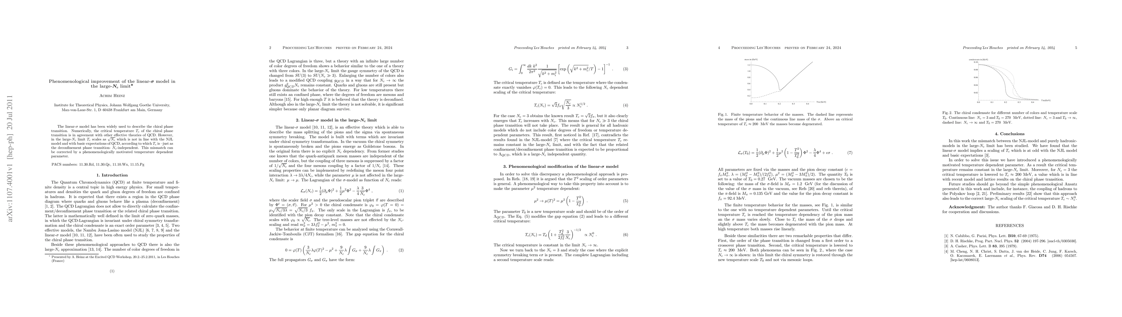 The linear-$\sigma$ model has been widely used to describe the chiral phase transition. Numerically, the critical temperature $T_{c}$ of the chiral phase transition is in agreement with other effective theories of QCD. However, in the large-$N_{c}$ limit $T_{c}$ scales as $\sqrt{N_{c}}$ which is not in line with the NJL model and with basic expectations of QCD, according to which $T_{c}$ is --just as the deconfinement phase transition- $N_{c}$-independent. This mismatch can be corrected by a phenomenologically motivated temperature dependent parameter.