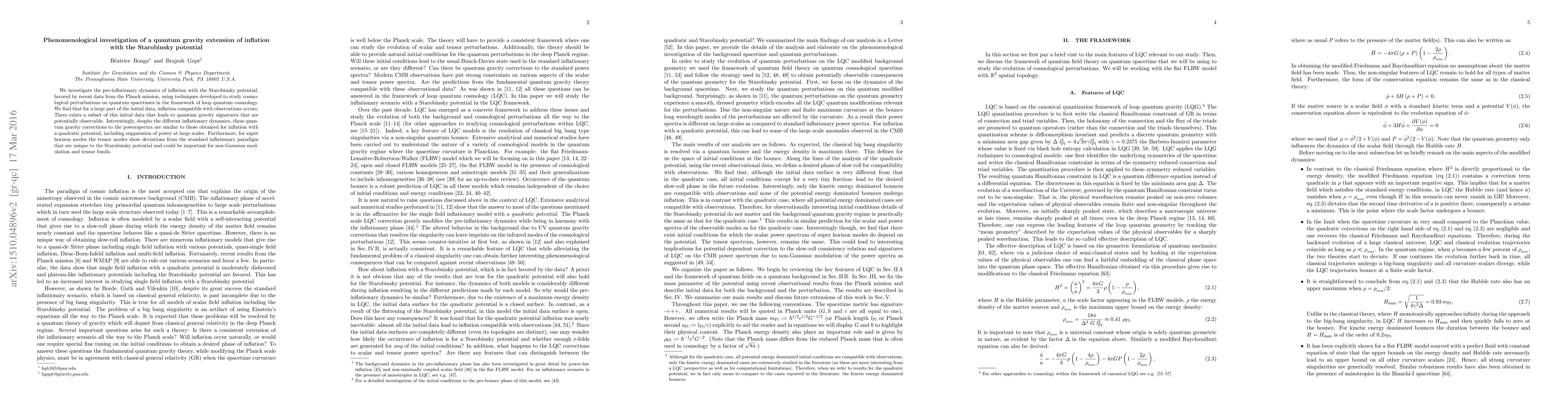 We investigate the pre-inflationary dynamics of inflation with the Starobinsky potential, favored by recent data from the Planck mission, using techniques developed to study cosmological perturbations on quantum spacetimes in the framework of loop quantum cosmology. We find that for a large part of the initial data, inflation compatible with observations occurs. There exists a subset of this initial data that leads to quantum gravity signatures that are potentially observable. Interestingly, despite the different inflationary dynamics, these quantum gravity corrections to the powerspectra are similar to those obtained for inflation with a quadratic potential, including suppression of power at large scales. Furthermore, for super horizon modes the tensor modes show deviations from the standard inflationary paradigm that are unique to the Starobinsky potential and could be important for non-Gaussian modulation and tensor fossils.