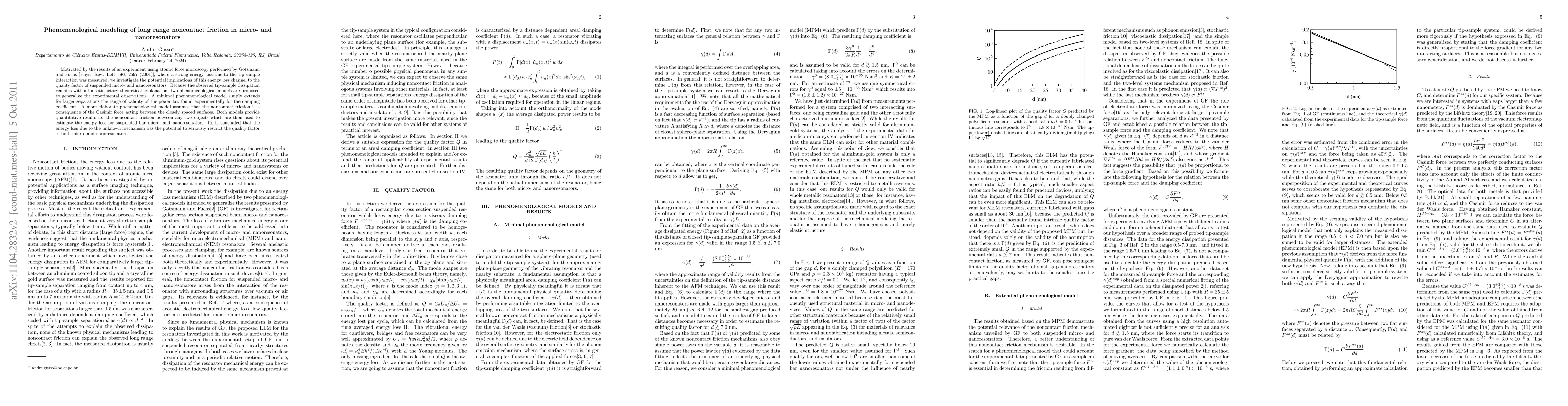 This paper proposes two phenomenological models to explain the long-range noncontact friction observed in micro- and nanoresonators, attributing it either to an extended power law or the Casimir force. The models predict significant energy loss, potentially restricting the quality factor of these devices.
