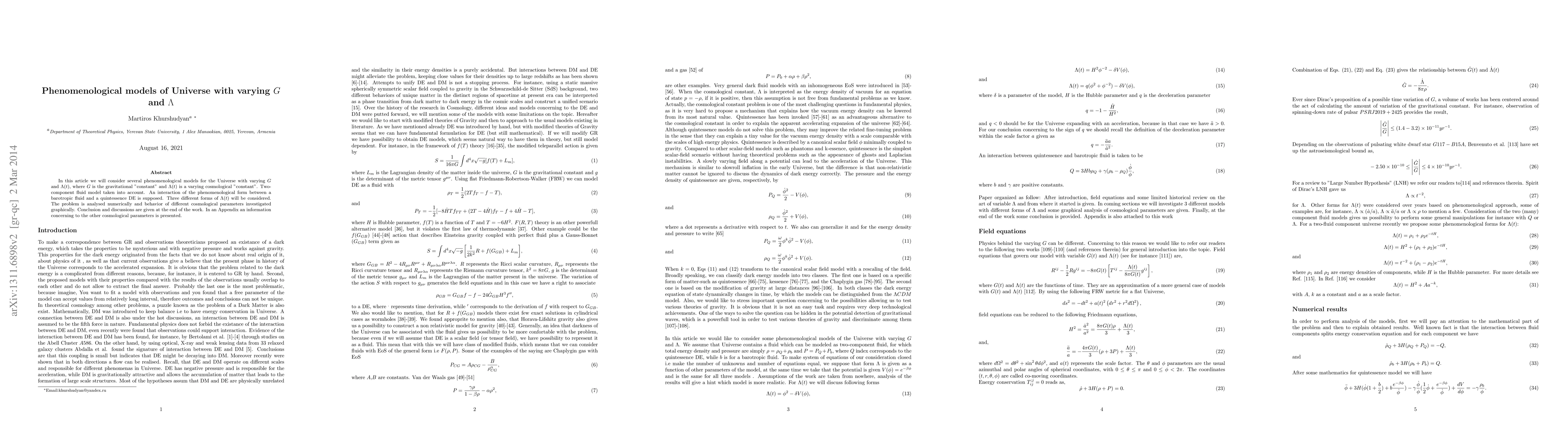 This paper explores phenomenological models of the Universe with a varying gravitational constant $G$ and a time-dependent cosmological constant $\Lambda(t)$. It examines interactions between a barotropic fluid and quintessence dark energy, analyzing numerically three different forms of $\Lambda(t)$. The study concludes with graphical investigations of cosmological parameters and a discussion of the implications.