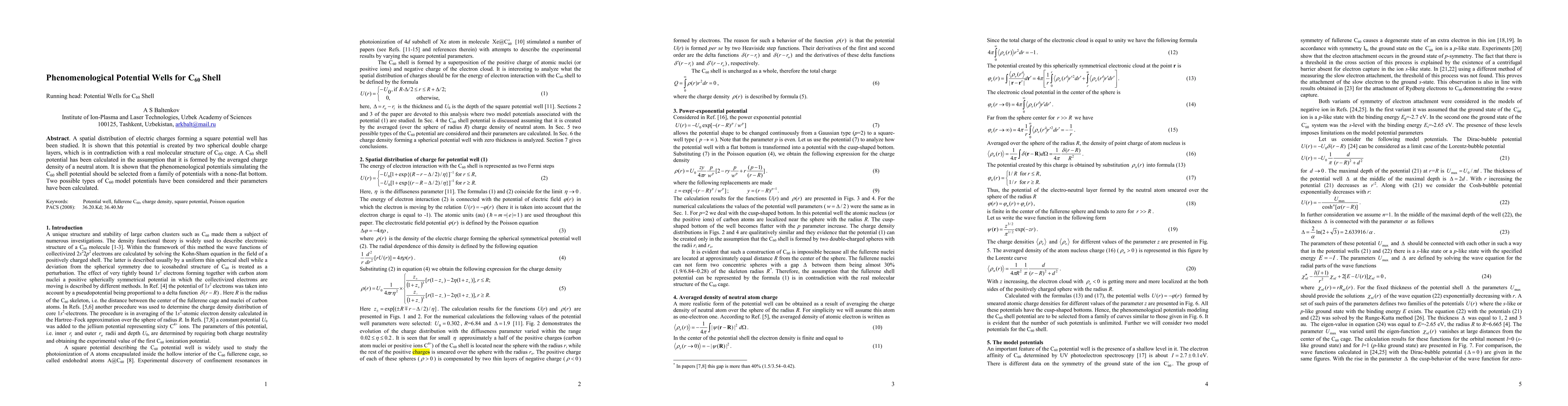 A spatial distribution of electric charges forming a square potential well has been studied. It is shown that this potential is created by two spherical double charge layers, which is in contradiction with a real molecular structure of C60 cage. A C60 shell potential has been calculated in the assumption that it is formed by the averaged charge density of a neutral atom. It is shown that the phenomenological potentials simulating the C60 shell potential should be selected from a family of potentials with a none-flat bottom. Two possible types of C60 model potentials have been considered and their parameters have been calculated.