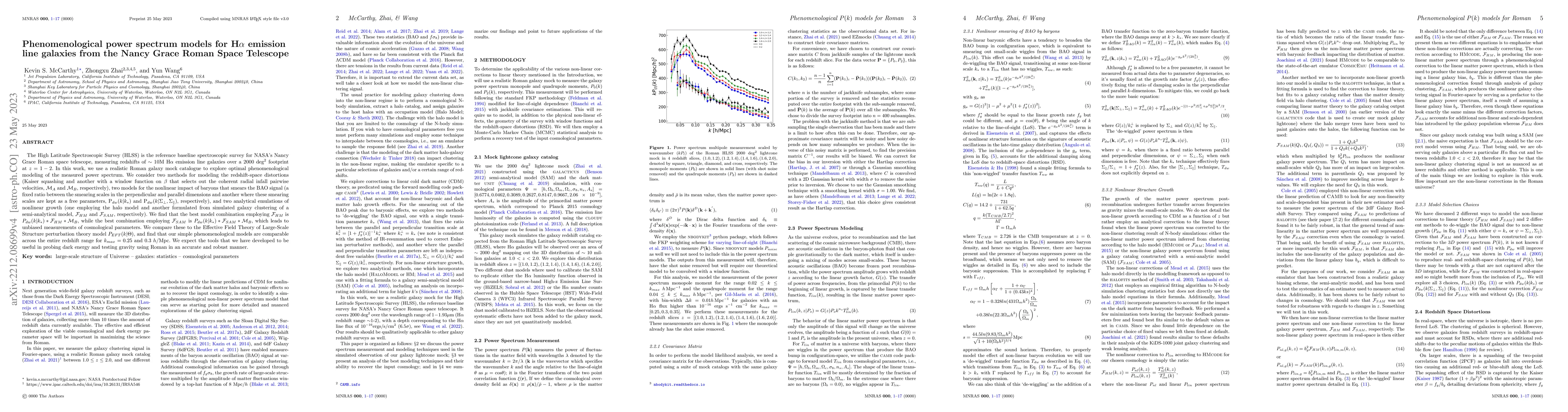 This paper explores the optimal phenomenological modeling of the power spectrum for H$\alpha$ emission line galaxies from the Nancy Grace Roman Space Telescope's High Latitude Spectroscopic Survey. The study compares various models for redshift-space distortions, baryonic smearing, and nonlinear growth, finding that $P_{dw}(k|k_*)*F_{HM}*M_B$ and $P_{dw}(k|k_*)*F_{SAM}*M_B$ provide the best results, comparable to the Effective Field Theory model, for accurate cosmological parameter measurements.