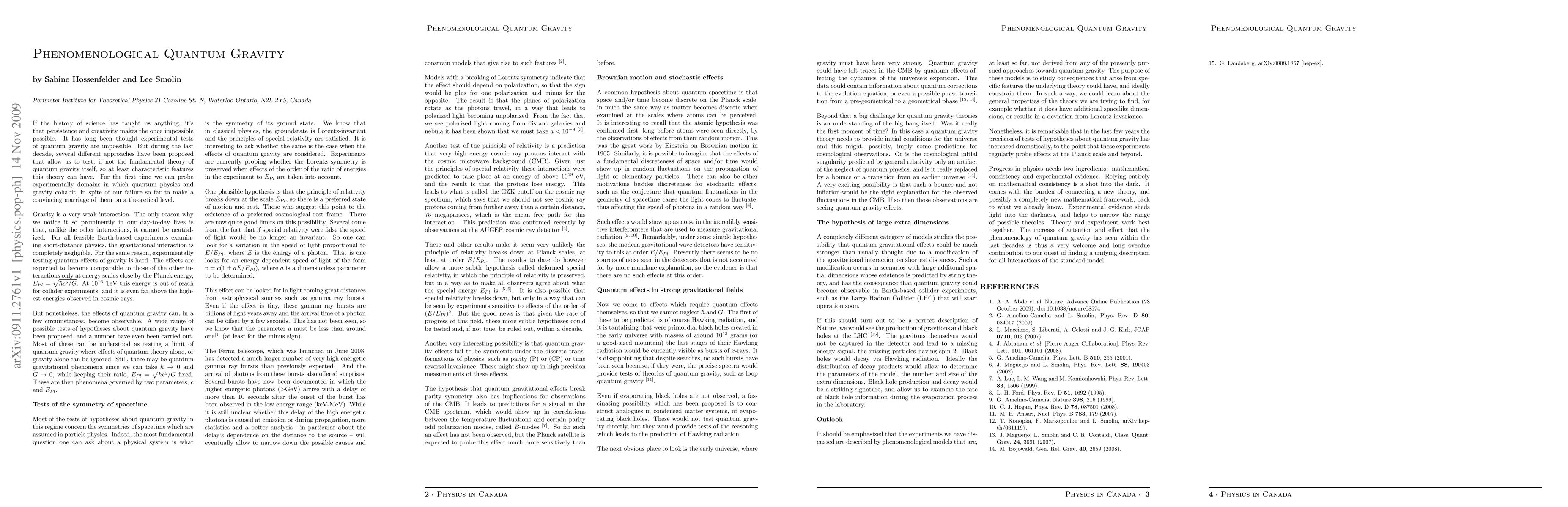If the history of science has taught us anything, it's that persistence and creativity makes the once impossible possible. It has long been thought experimental tests of quantum gravity are impossible. But during the last decade, several different approaches have been proposed that allow us to test, if not the fundamental theory of quantum gravity itself, so at least characteristic features this theory can have. For the first time we can probe experimentally domains in which quantum physics and gravity cohabit, in spite of our failure so far to make a convincing marriage of them on a theoretical level.