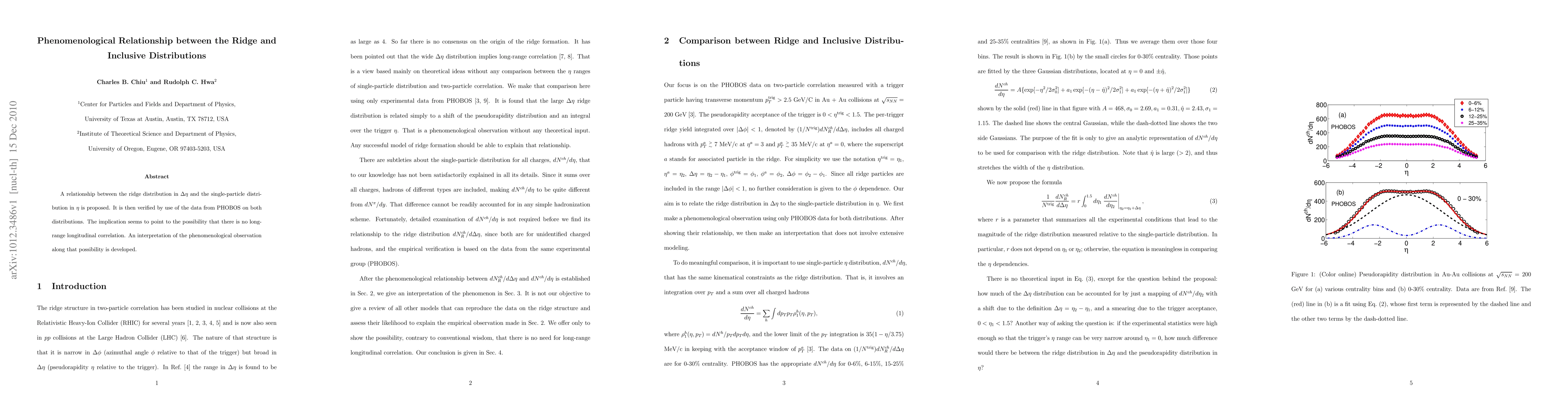 This paper proposes and verifies a phenomenological relationship between the ridge distribution in $\Delta\eta$ and the single-particle distribution in $\eta$ using PHOBOS data, suggesting the absence of long-range longitudinal correlation. An interpretation of this observation is also developed.