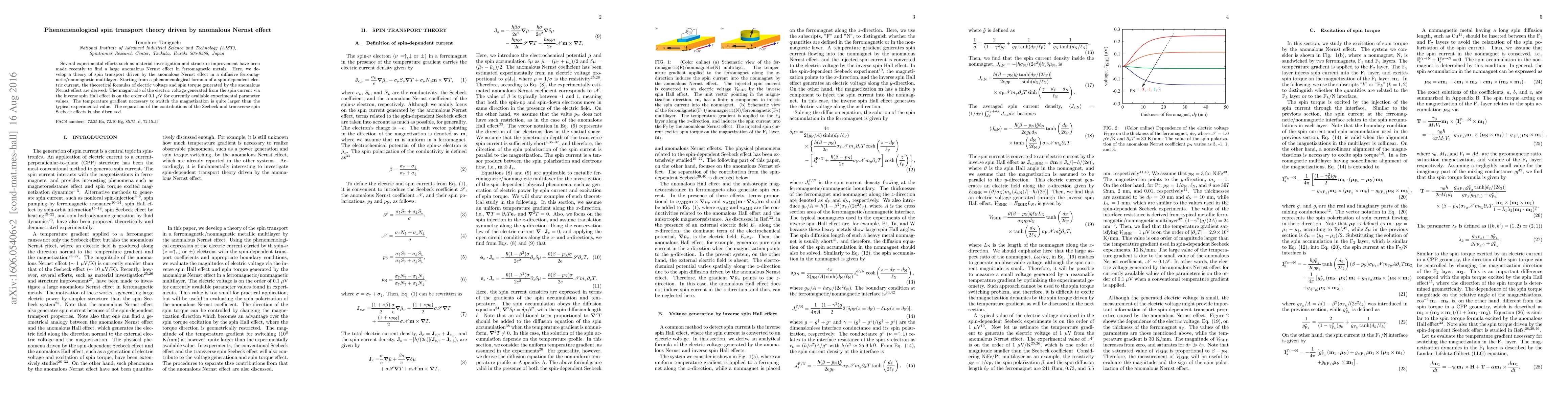 This paper develops a phenomenological spin transport theory for ferromagnetic/nonmagnetic multilayers driven by the anomalous Nernst effect, deriving formulas for electric voltage and spin torque. The predicted electric voltage from spin current via the inverse spin Hall effect is around $0.1$ $\mu$V for current experimental parameters, and the required temperature gradient for magnetization switching is much higher than typical experimental values. The study also differentiates between Seebeck and transverse spin Seebeck effects.