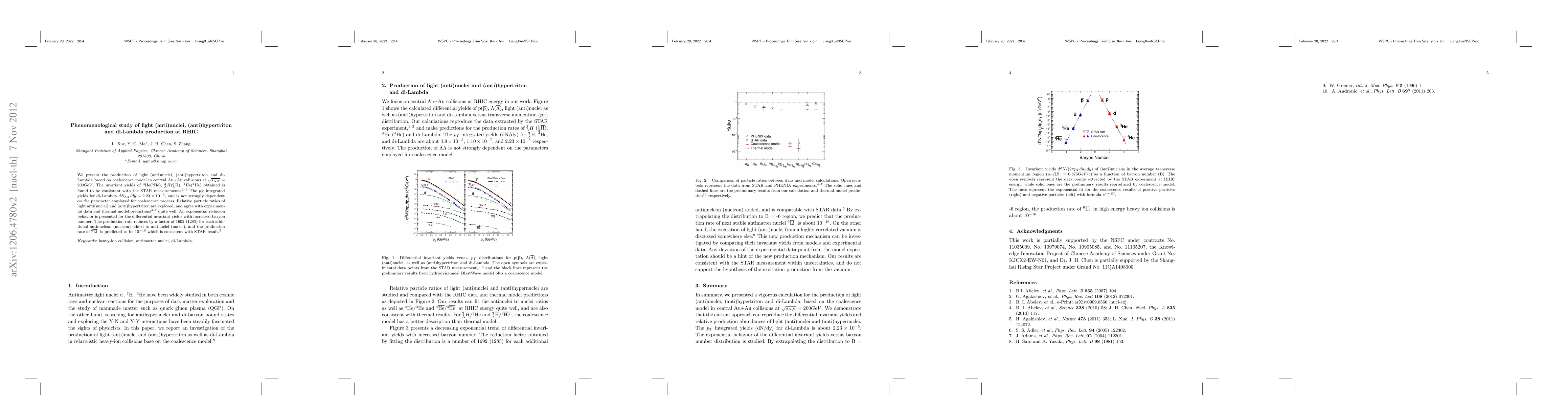 This study investigates the production of light (anti)nuclei, (anti)hypertriton, and di-Lambda in central Au+Au collisions at RHIC using a coalescence model. The results are consistent with STAR measurements and show an exponential reduction in production rate with increased baryon number.