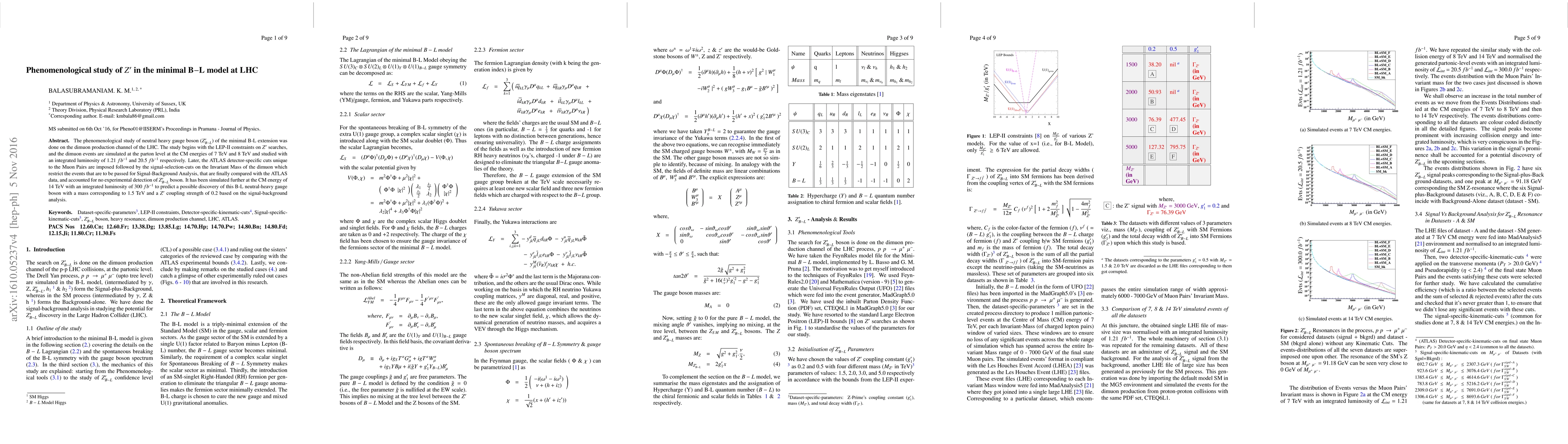The phenomenological study of neutral heavy gauge boson ($Z^{\prime}_{B-L}$) of the minimal B-L extension was done on the dimuon production channel of the LHC. The study begins with the LEP-II constraints on $Z'$ searches, and the dimuon events are simulated at the parton level at the CM energies of 7 TeV and 8 TeV and studied with an integrated luminosity of 1.21 $fb^{-1}$ and 20.5 $fb^{-1}$ respectively. Later, the ATLAS detector-specific cuts unique to the Muon Pairs are imposed followed by the signal-selection-cuts on the Invariant Mass of the dimuon which restrict the events that are to be passed for Signal-Background Analysis, that are finally compared with the ATLAS data, and accounted for no experimental detection of $Z^{\prime}_{B-L}$ boson. It has been simulated further at the CM energy of 14 TeV with an integrated luminosity of 300 $fb^{-1}$ to predict a possible discovery of this B-L neutral-heavy gauge boson with a mass corresponding to 1.5 TeV and a $Z'$ coupling strength of 0.2 based on the signal-background analysis.