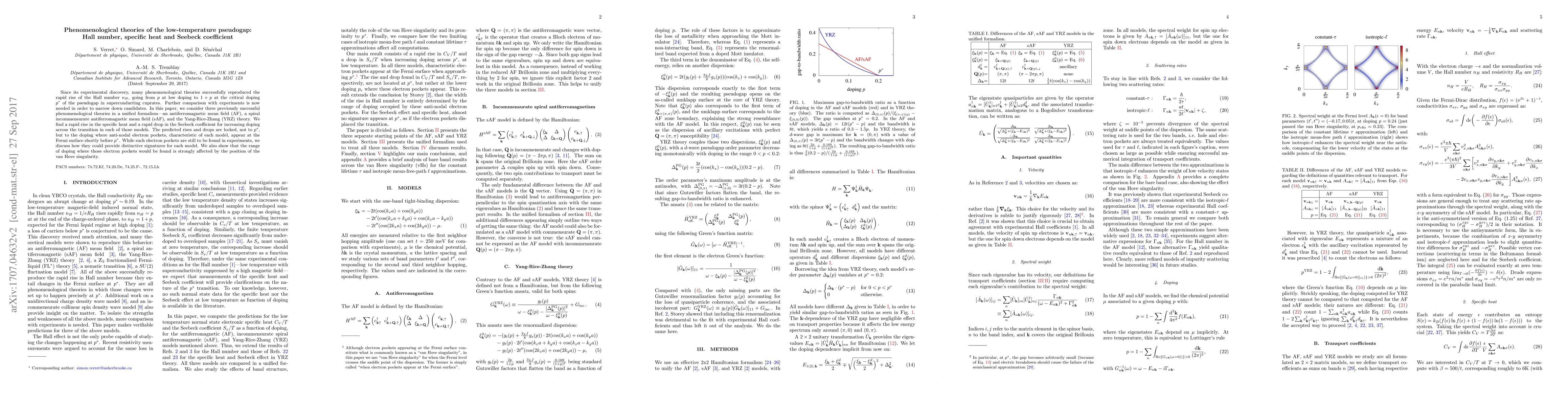 Since its experimental discovery, many phenomenological theories successfully reproduced the rapid rise from $p$ to $1+p$ found in the Hall number $n_H$ at the critical doping $p^*$ of the pseudogap in superconducting cuprates. Further comparison with experiments is now needed in order to narrow down candidates. In this paper, we consider three previously successful phenomenological theories in a unified formalism---an antiferromagnetic mean field (AF), a spiral incommensurate antiferromagnetic mean field (sAF), and the Yang-Rice-Zhang (YRZ) theory. We find a rapid rise in the specific heat and a rapid drop in the Seebeck coefficient for increasing doping across the transition in each of those models. The predicted rises and drops are locked, not to~$p^*$, but to the doping where anti-nodal electron pockets, characteristic of each model, appear at the Fermi surface shortly before~$p^*$. While such electron pockets are still to be found in experiments, we discuss how they could provide distinctive signatures for each model. We also show that the range of doping where those electron pockets would be found is strongly affected by the position of the van~Hove singularity.