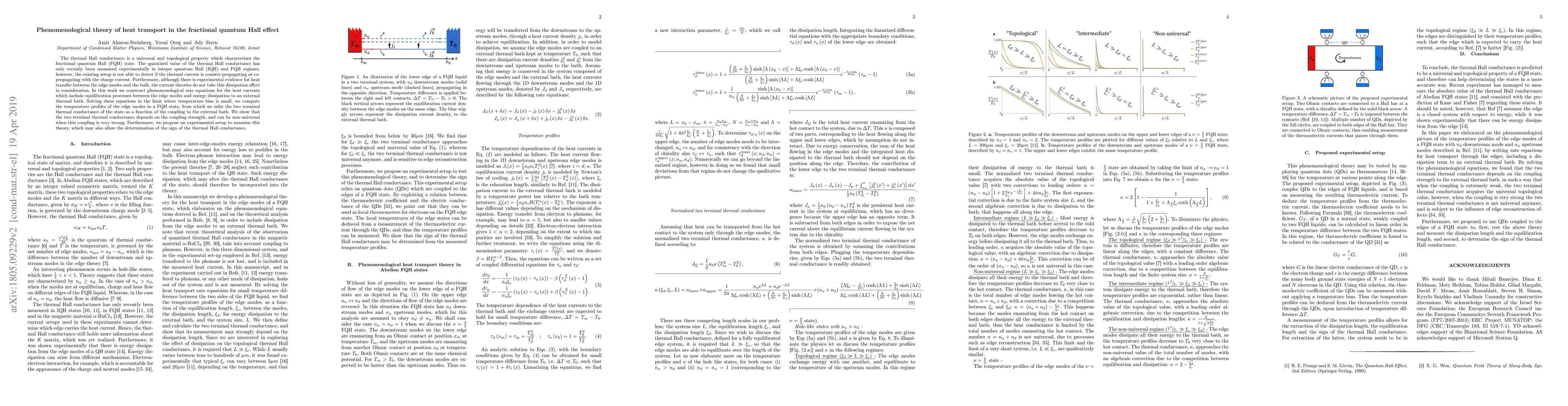 This paper develops a phenomenological theory for heat transport in fractional quantum Hall states, proposing rate equations that account for equilibration between edge modes and energy dissipation. It shows that the thermal conductance can be non-universal under strong coupling to an external thermal bath and suggests an experimental setup to determine the thermal Hall conductance's sign.
