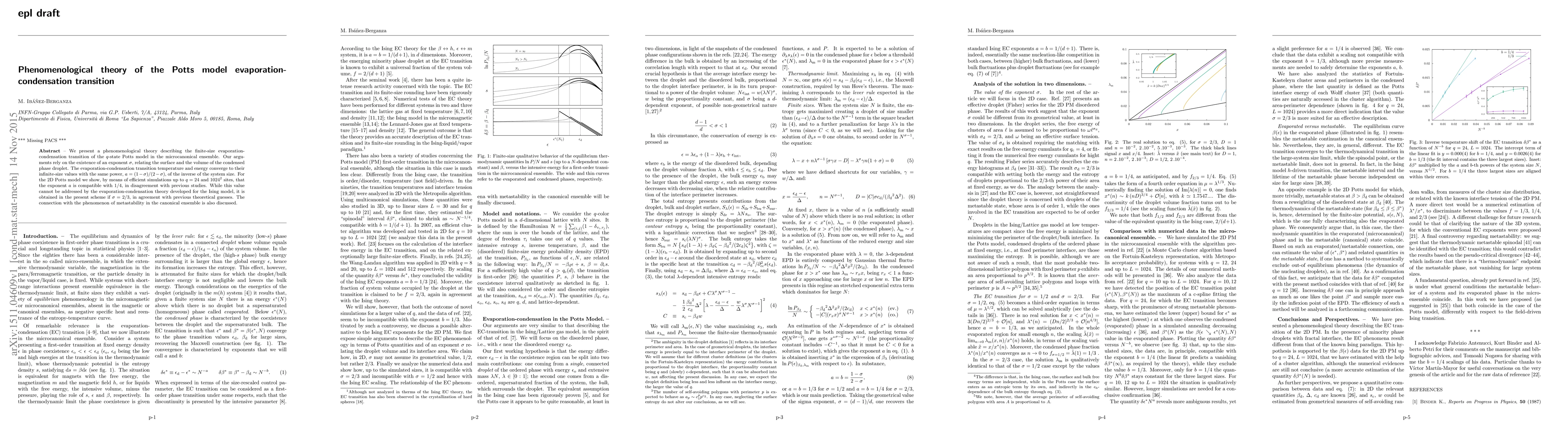 This paper develops a phenomenological theory for the finite-size evaporation-condensation transition in the q-state Potts model, identifying a new exponent $\sigma$ that relates droplet surface and volume. Simulations for the 2D Potts model suggest an exponent value of $1/4$, differing from Ising model theories and aligning with theoretical predictions when $\sigma=2/3$.