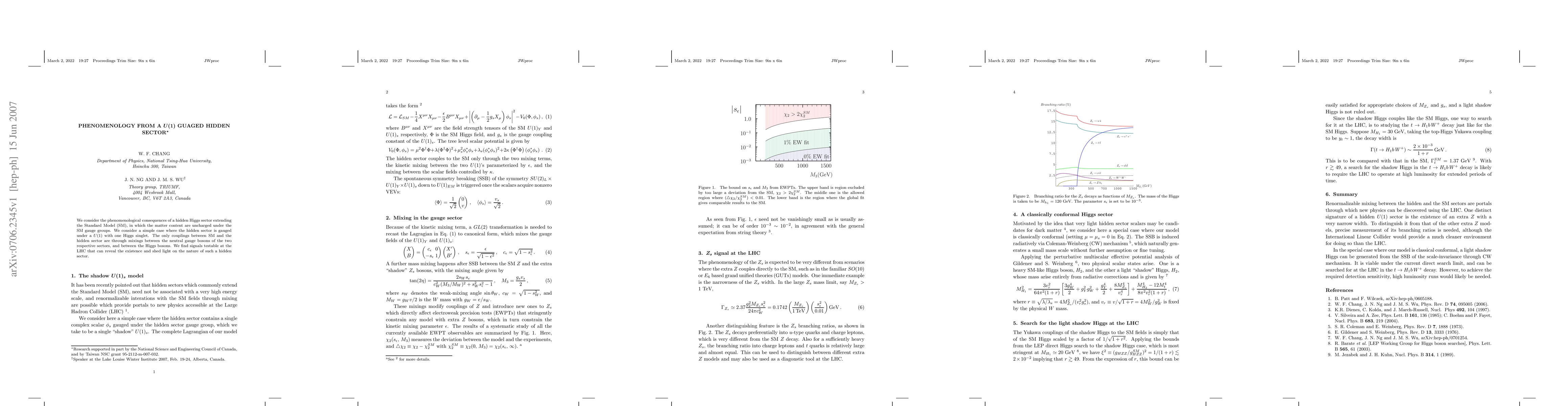 This paper explores the phenomenological implications of a hidden Higgs sector in the Standard Model, gauged by a U(1) symmetry, with matter uncharged under the SM gauge groups. It identifies testable signals at the LHC that could reveal the existence and characteristics of this hidden sector.