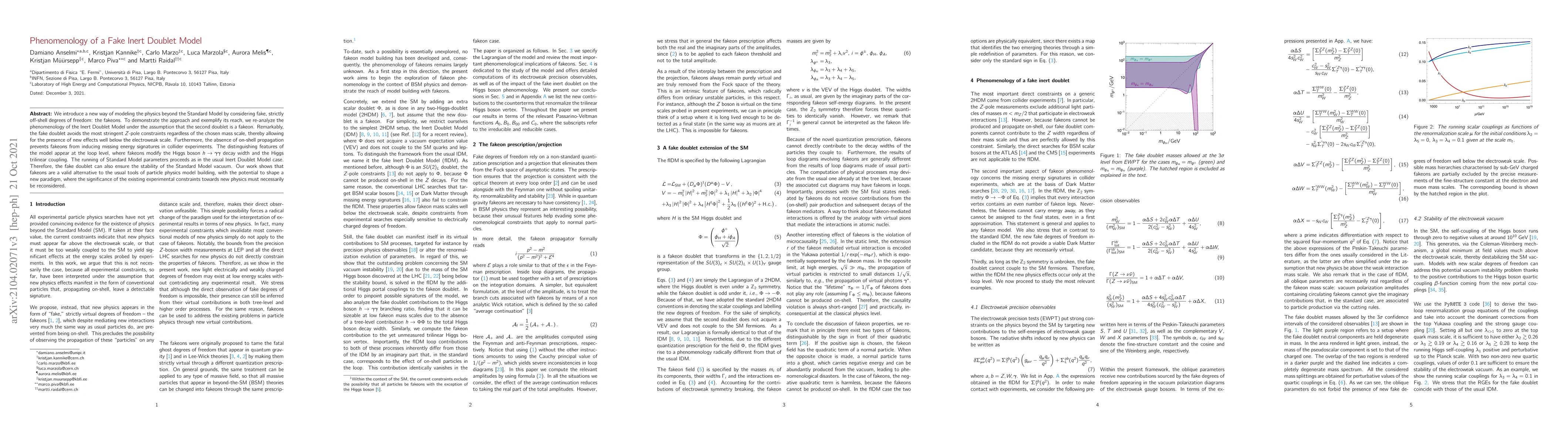 We introduce a new way of modeling the physics beyond the Standard Model by considering fake, strictly off-shell degrees of freedom: the fakeons. To demonstrate the approach and exemplify its reach, we re-analyze the phenomenology of the Inert Doublet Model under the assumption that the second doublet is a fakeon. Remarkably, the fake doublet avoids the most stringent $Z$-pole constraints regardless of the chosen mass scale, thereby allowing for the presence of new effects well below the electroweak scale. Furthermore, the absence of on-shell propagation prevents fakeons from inducing missing energy signatures in collider experiments. The distinguishing features of the model appear at the loop level, where fakeons modify the Higgs boson $h\to\gamma\gamma$ decay width and the Higgs trilinear coupling. The running of Standard Model parameters proceeds as in the usual Inert Doublet Model case. Therefore, the fake doublet can also ensure the stability of the Standard Model vacuum. Our work shows that fakeons are a valid alternative to the usual tools of particle physics model building, with the potential to shape a new paradigm, where the significance of the existing experimental constraints towards new physics must necessarily be reconsidered.