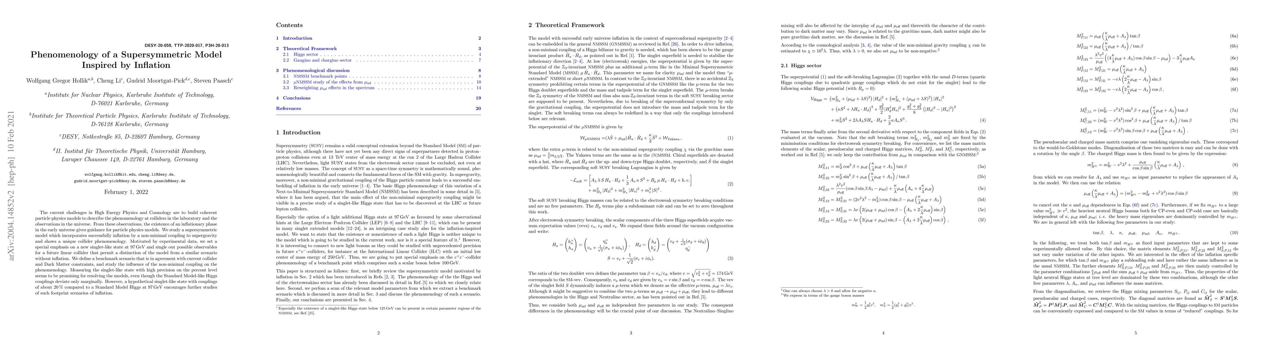 Researchers study a supersymmetric model with inflationary properties, proposing a new singlet-like state at 97 GeV as a key observable for future linear collider experiments.