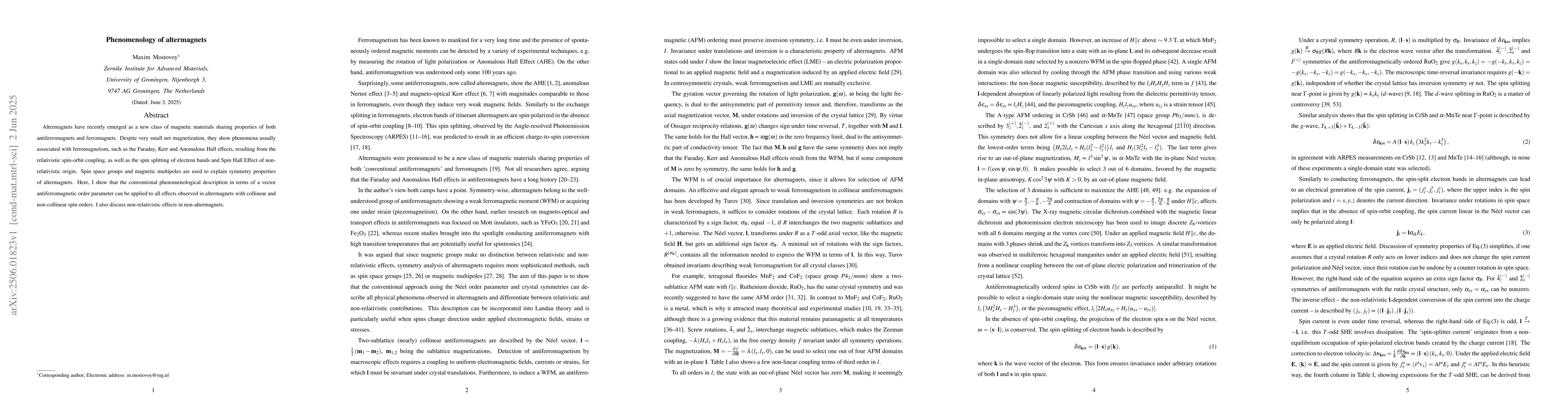 Development of a unified phenomenological description for altermagnets, incorporating both relativistic and non-relativistic effects.