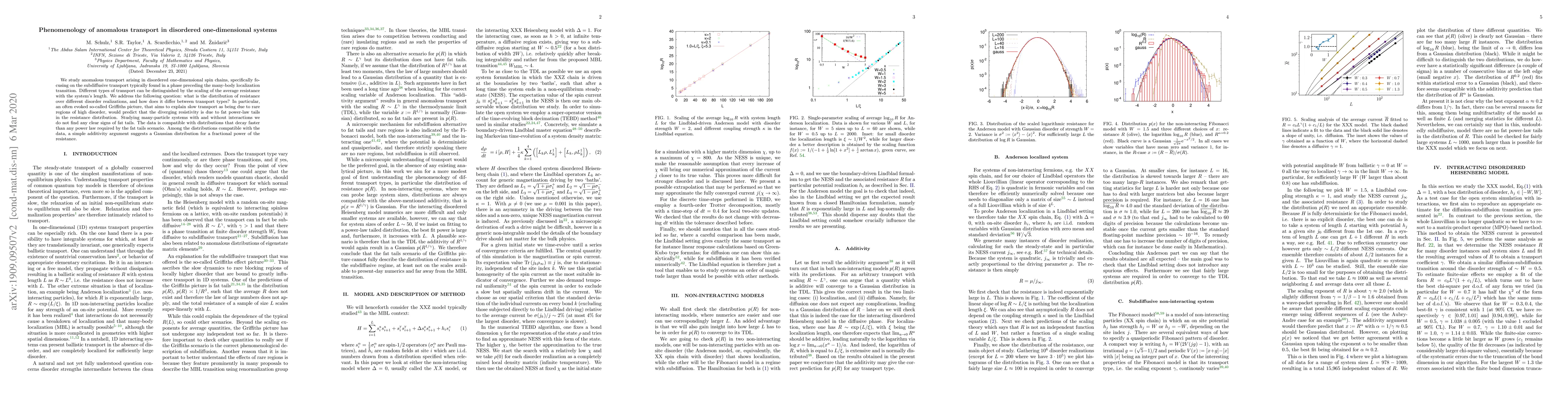 Researchers studied anomalous transport in disordered one-dimensional spin chains, finding that resistance distributions do not support power-law tails as predicted by the Griffiths picture, but instead suggest a Gaussian distribution for certain types of transport.
