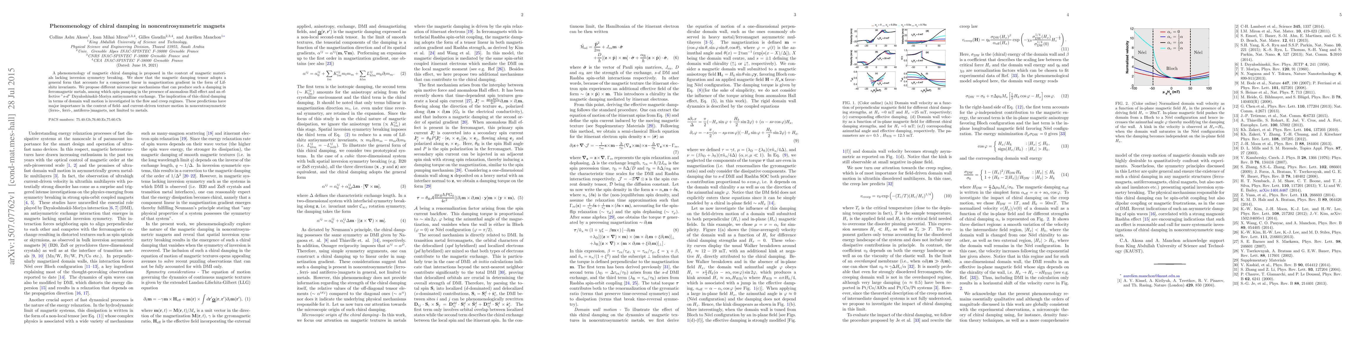 Researchers propose a phenomenology of magnetic chiral damping in noncentrosymmetric magnets, which can affect domain wall motion and texture motion in ferro-, ferri-, and antiferromagnets.