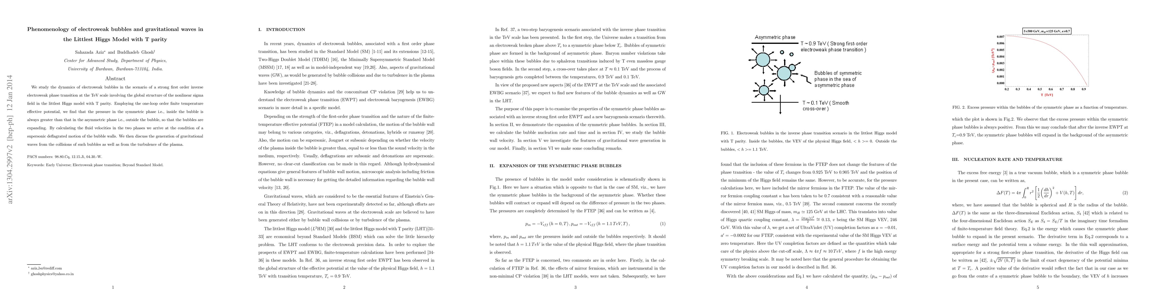 The paper investigates the behavior of electroweak bubbles in the Littlest Higgs Model with T parity, focusing on a strong first-order inverse electroweak phase transition at TeV scale. Utilizing one-loop order finite temperature effective potential, it finds expanding bubbles due to higher pressure inside. The study also examines bubble wall motion, identifying supersonic deflagrated motion, and discusses gravitational wave generation from bubble collisions and plasma turbulence.