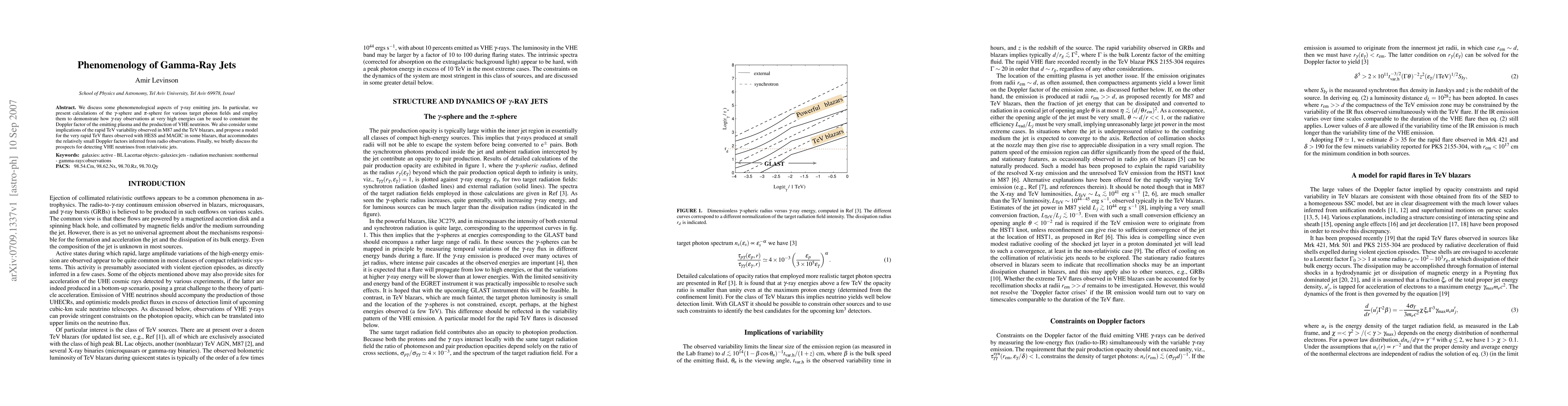 We discuss some phenomenological aspects of $\gamma$-ray emitting jets. In particular, we present calculations of the $\gamma$-sphere and $\pi$-sphere for various target photon fields, and employ them to demonstrate how $\gamma$-ray observations at very high energies can be used to constraint the Doppler factor of the emitting plasma and the production of VHE neutrinos. We also consider the implications of the rapid TeV variability observed in M87 and the TeV blazars, and propose a model for the very rapid TeV flares observed with HESS and MAGIC in some blazars,that accommodates the relatively small Doppler factors inferred from radio observations. Finally, we briefly discuss the prospects for detecting VHE neutrinos from relativistic jets.