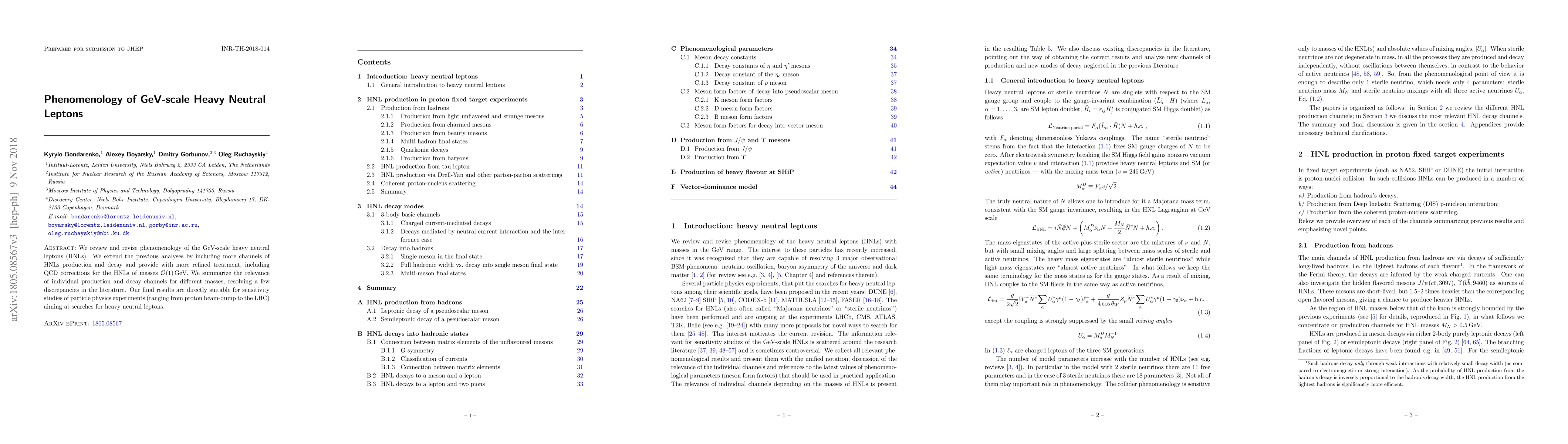 This paper reviews and updates the phenomenology of GeV-scale heavy neutral leptons (HNLs), incorporating additional production and decay channels and refining analyses with QCD corrections. It resolves discrepancies in previous studies and provides results useful for various particle physics experiments.
