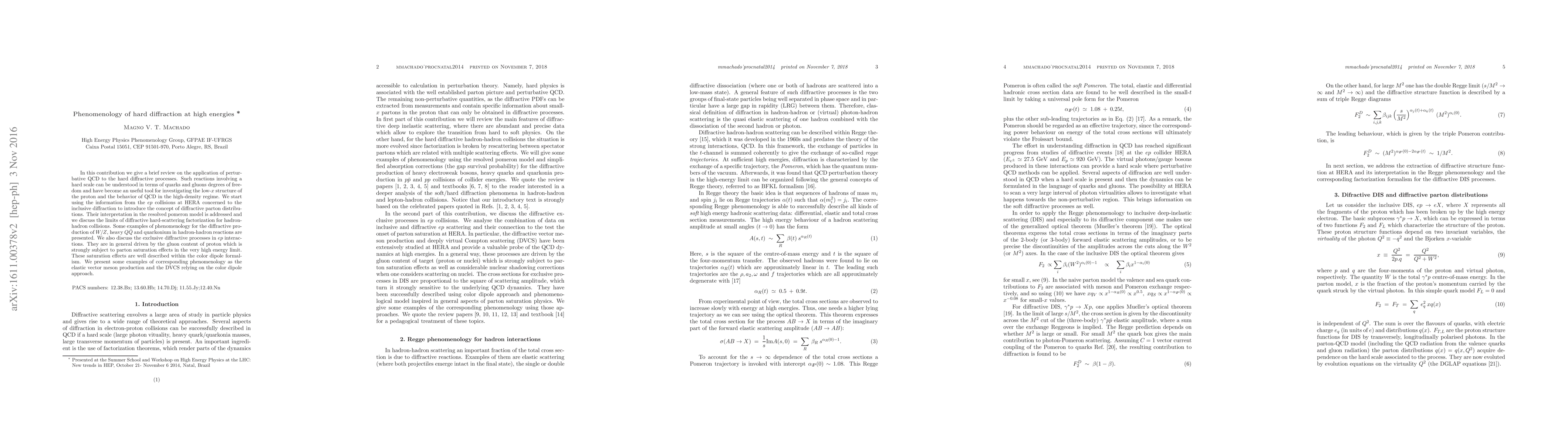 We present some of the topics covered in two lectures under the same title that were given at the "Summer School on High Energy Physics at the LHC: New trends in HEP" in Natal, Brazil. In this contribution we give a brief review on the application of perturbative QCD to the hard diffractive processes. Some examples of phenomenology for the diffractive production of $W/Z$, heavy $Q\bar{Q}$ and quarkonium in hadron-hadron reactions are presented. It is also discussed the exclusive diffractive processes in $ep$ interactions. They are in general driven by the gluon content of proton which is strongly subject to parton saturation effects in the very high energy limit. These saturation effects are well described within the color dipole formalism. We present some examples of corresponding phenomenology as the elastic vector meson production and the DVCS relying on the color dipole approach.