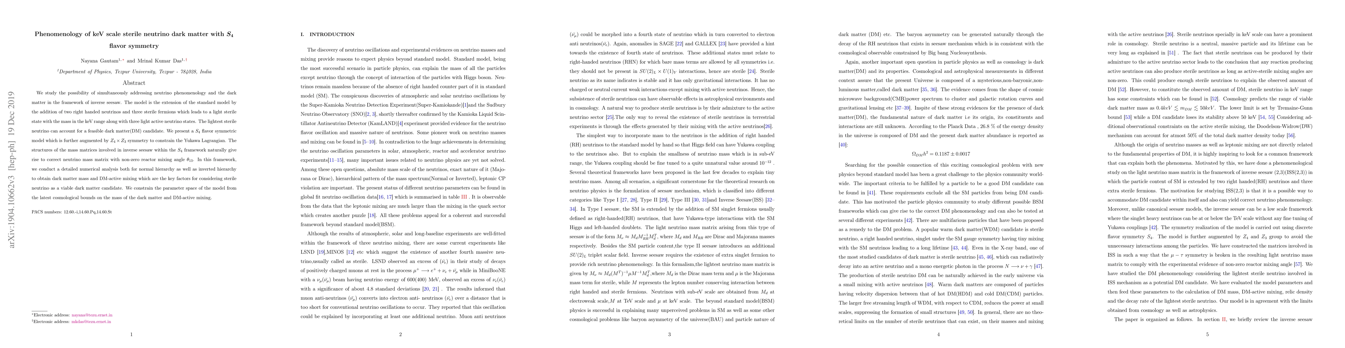 This paper explores a $S_{4}$ flavor symmetric model within the inverse seesaw framework to address both neutrino phenomenology and keV scale sterile neutrino dark matter. The model incorporates right-handed neutrinos and sterile fermions, leading to a viable dark matter candidate, with constraints derived from cosmological data.