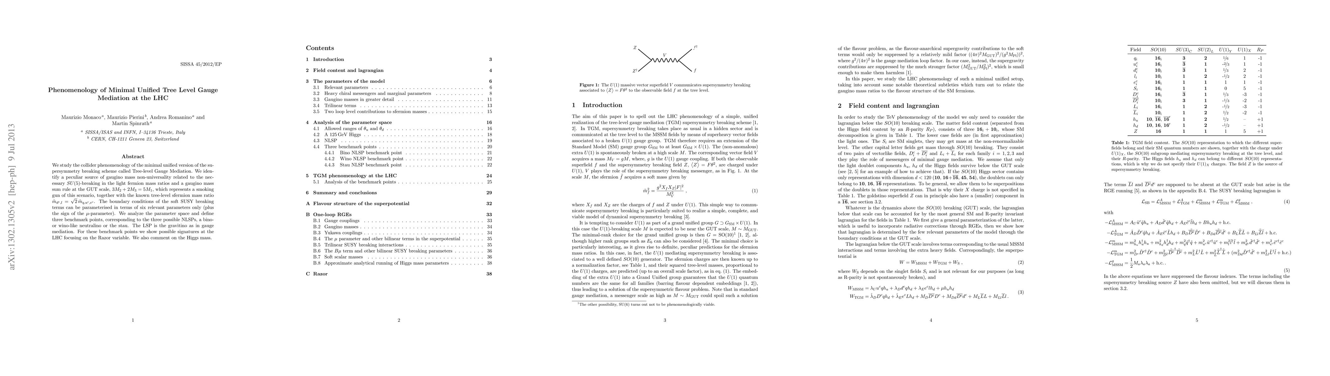 This paper explores the collider phenomenology of minimal unified tree-level gauge mediation, identifying unique gaugino mass non-universality and a sum rule for gaugino masses at the GUT scale. It defines three benchmark points for different next-to-lightest supersymmetric particles (NLSPs) and examines their signatures at the LHC, particularly using the Razor variable.