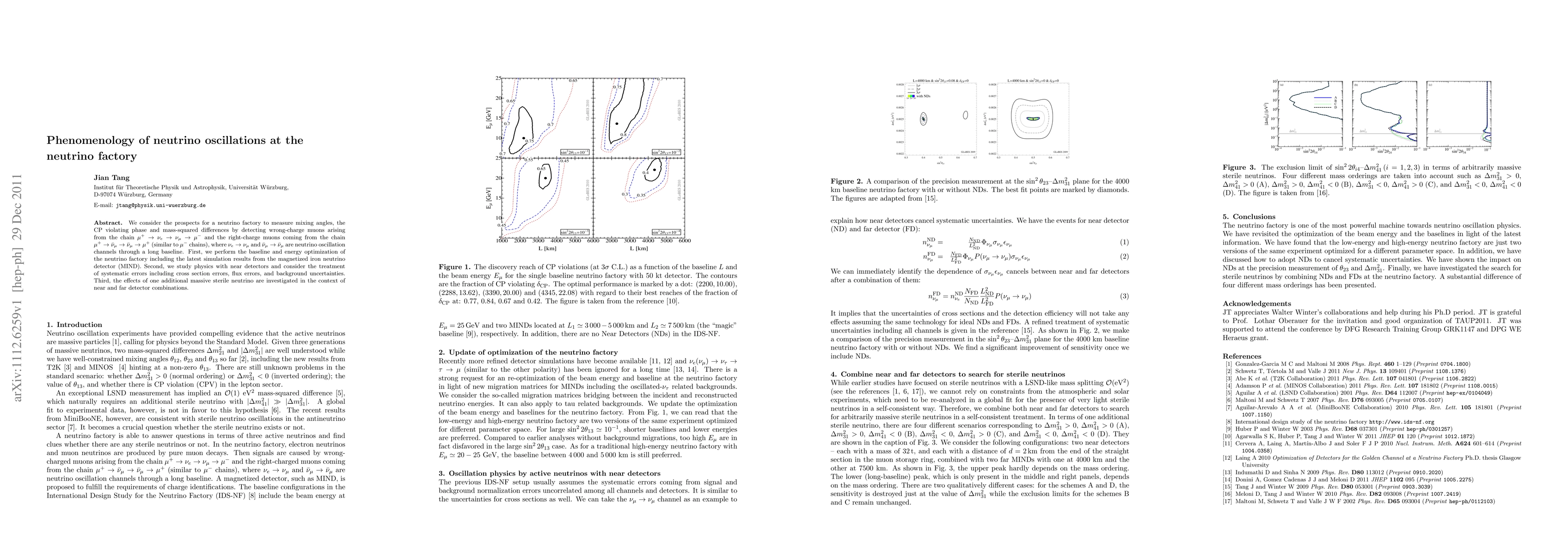 This paper explores the potential of a neutrino factory to measure neutrino mixing angles, CP violation, and mass-squared differences via detecting wrong-charged muons from oscillation chains. It optimizes baseline and energy settings and examines the impact of systematic errors and sterile neutrinos on detection.