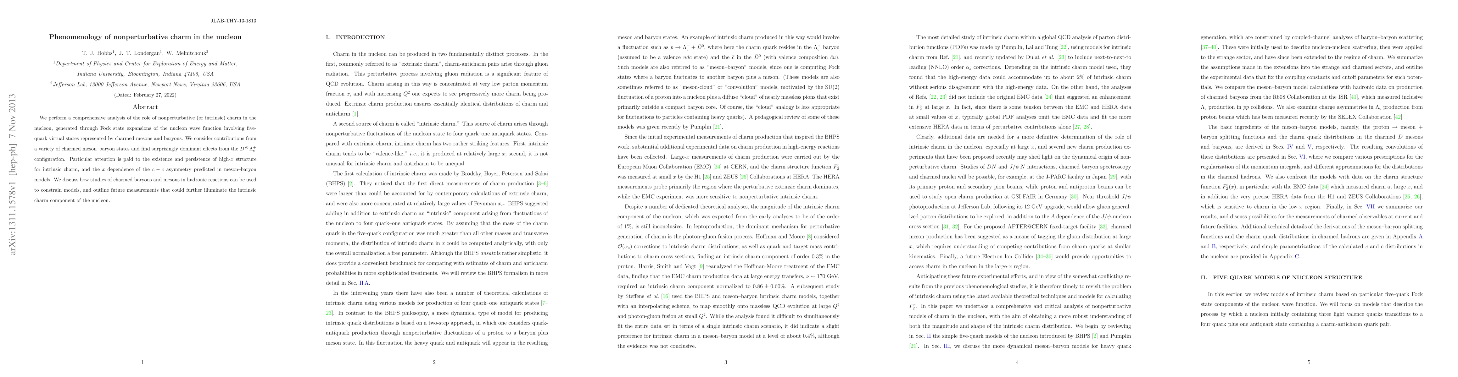 This paper analyzes the role of nonperturbative charm within nucleons, revealing significant contributions from the (Dbar^{*0} Lambda_c+) configuration. It highlights the persistence of high-x structure for intrinsic charm and discusses future measurements to better understand this component.
