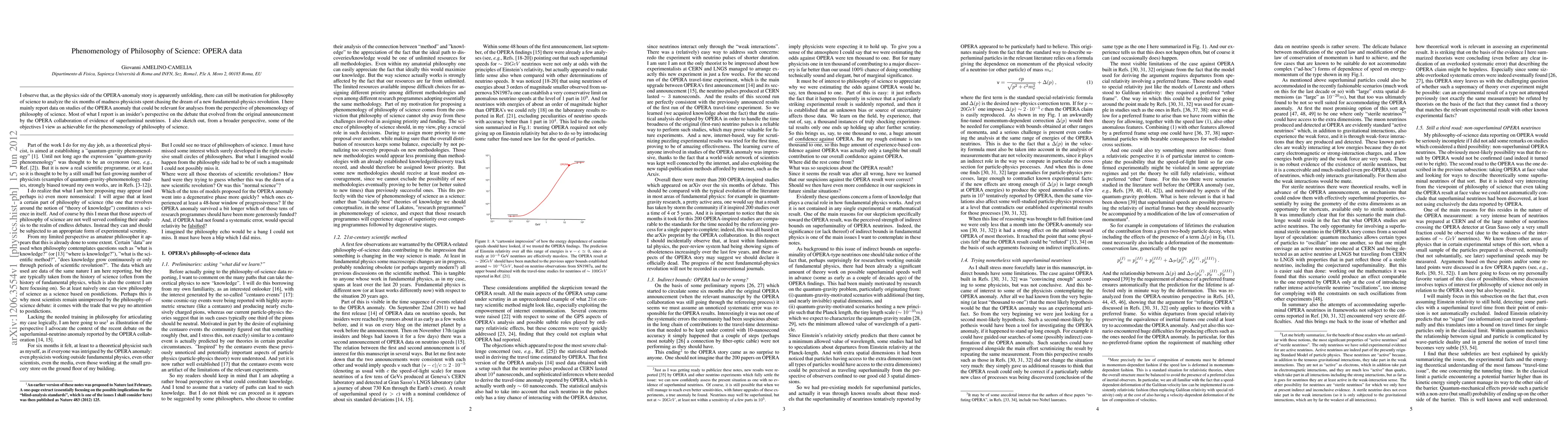 I observe that, as the physics side of the OPERA-anomaly story is apparently unfolding, there can still be motivation for philosophy of science to analyze the six months of madness physicists spent chasing the dream of a new fundamental-physics revolution. I here mainly report data on studies of the OPERA anomaly that could be relevant for analyses from the perspective of phenomenology of philosophy of science. Most of what I report is an insider's perspective on the debate that evolved from the original announcement by the OPERA collaboration of evidence of superluminal neutrinos. I also sketch out, from a broader perspective, some of the objectives I view as achievable for the phenomenology of philosophy of science.