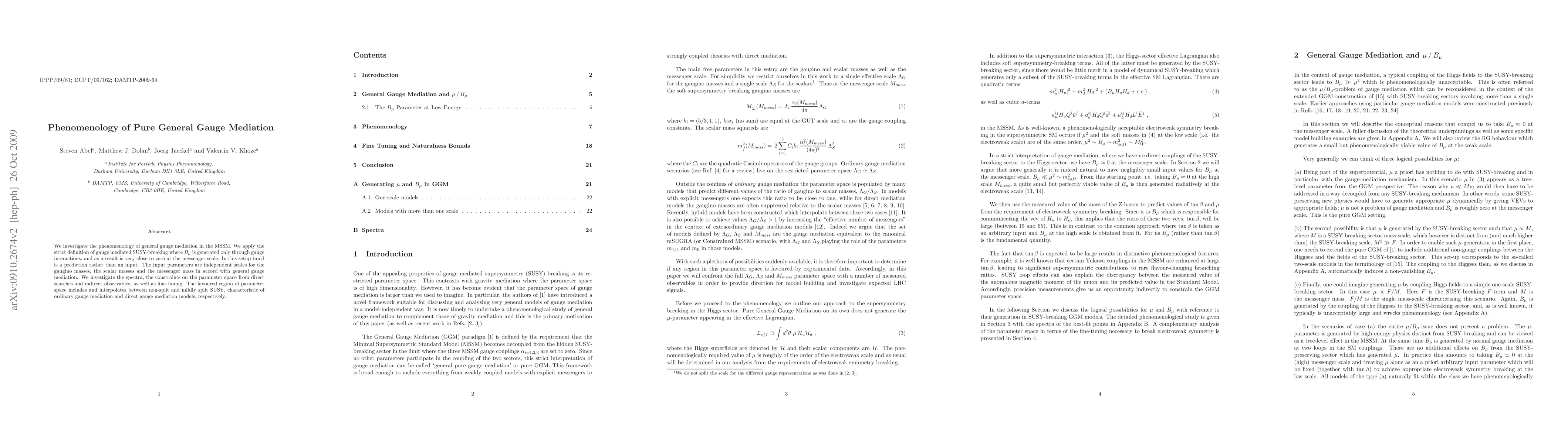 This paper explores the phenomenology of general gauge mediation in the MSSM, focusing on scenarios where B_mu is nearly zero and tan beta is a prediction. It examines the spectra, constraints from searches and observables, and fine-tuning, finding a favored region that blends features of both ordinary and direct gauge mediation.