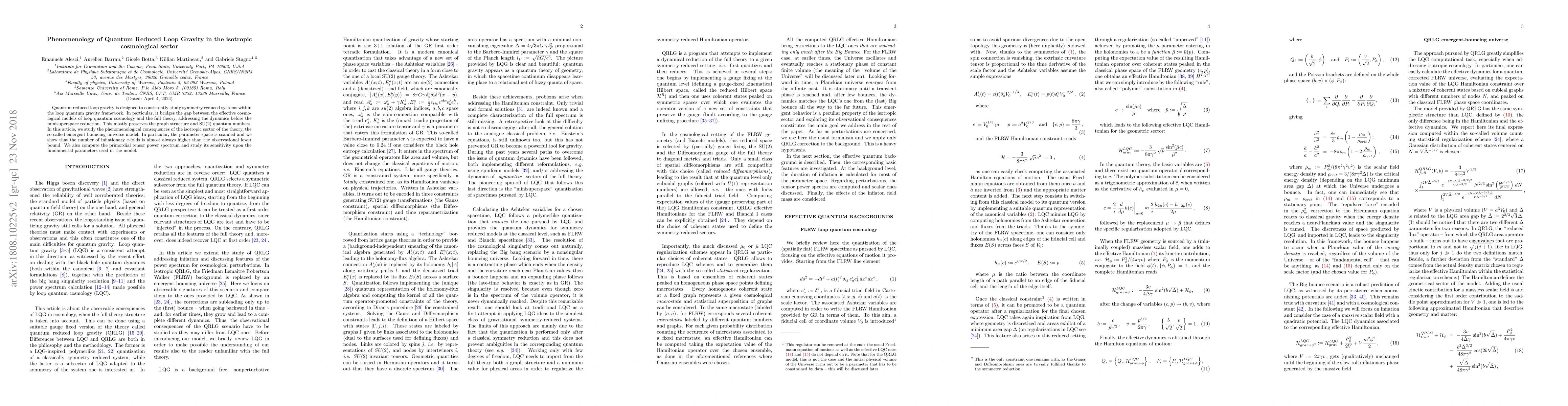 Quantum reduced loop gravity is designed to consistently study symmetry reduced systems within the loop quantum gravity framework. In particular, it bridges the gap between the effective cosmological models of loop quantum cosmology and the full theory, addressing the dynamics before the minisuperspace reduction. This mostly preserves the graph structure and SU(2) quantum numbers. In this article, we study the phenomenological consequences of the isotropic sector of the theory, the so-called emergent bouncing universe model. In particular, the parameter space is scanned and we show that the number of inflationary e-folds is almost always higher than the observational lower-bound. We also compute the primordial tensor power spectrum and study its sensitivity upon the fundamental parameters used in the model.