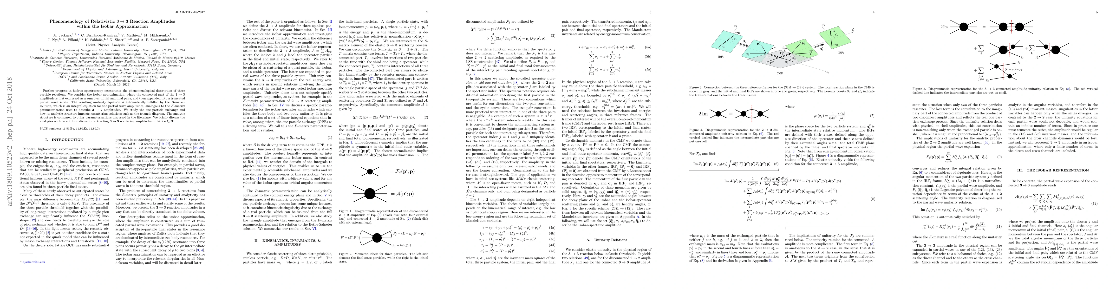 This paper explores the phenomenological description of relativistic three-particle reactions using the isobar approximation, deriving a unitarity equation fulfilled by the $B$-matrix solution. It compares the analytic structure of one particle exchange in rescattering solutions to existing literature and discusses parallels with lattice QCD methods.