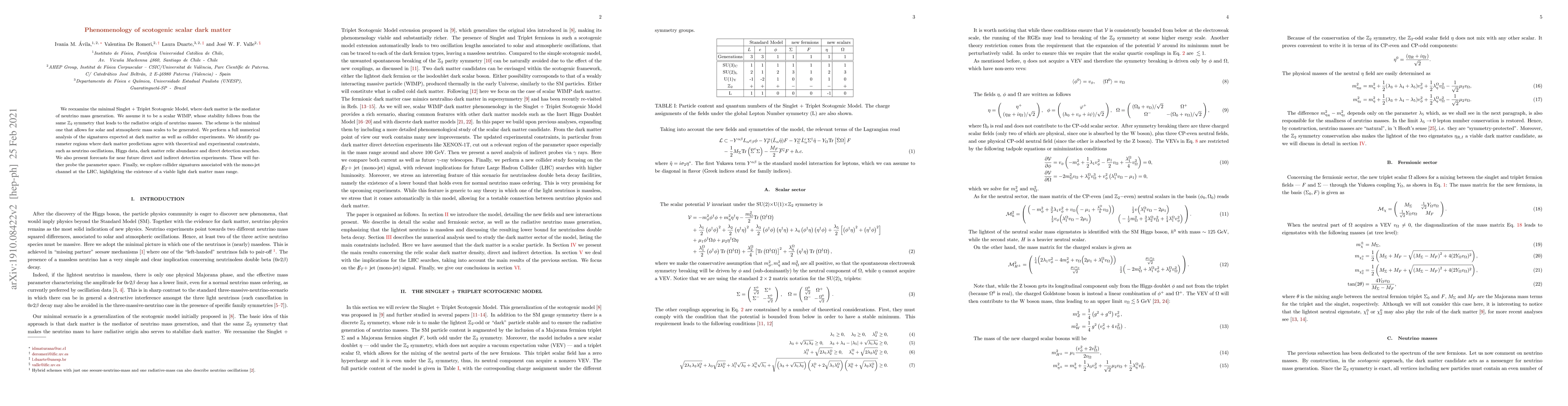 The paper presents a comprehensive analysis of the phenomenology of scalar dark matter in the Singlet + Triplet Scotogenic Model, including relic abundance, direct and indirect detection, and collider signatures.