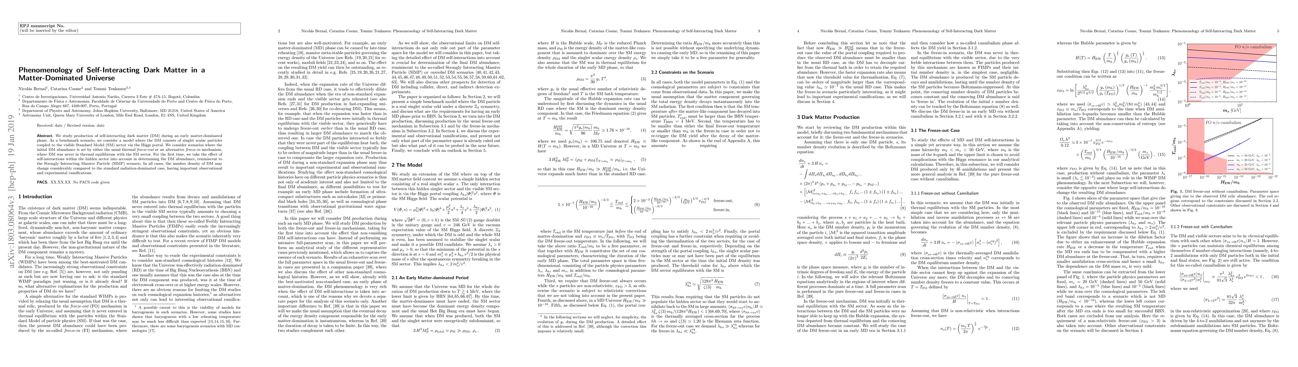 We study production of self-interacting dark matter (DM) during an early matter-dominated phase. As a benchmark scenario, we consider a model where the DM consists of singlet scalar particles coupled to the visible Standard Model (SM) sector via the Higgs portal. We consider scenarios where the initial DM abundance is set by either the usual thermal freeze-out or an alternative freeze-in mechanism, where DM was never in thermal equilibrium with the SM sector. For the first time, we take the effect of self-interactions within the hidden sector into account in determining the DM abundance, reminiscent to the Strongly Interacting Massive Particle (SIMP) scenario. In all cases, the number density of DM may change considerably compared to the standard radiation-dominated case, having important observational and experimental ramifications.
