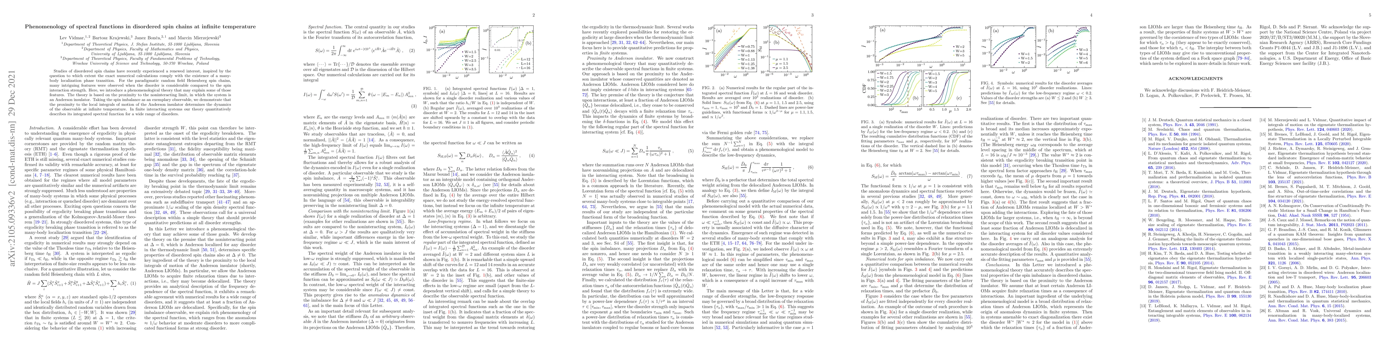 This paper develops a phenomenological theory to explain features in disordered spin chains, particularly their spectral functions, at infinite temperature. The theory leverages the system's proximity to the noninteracting limit, where it behaves as an Anderson insulator, and shows how this affects the dynamics of observables like spin imbalance.