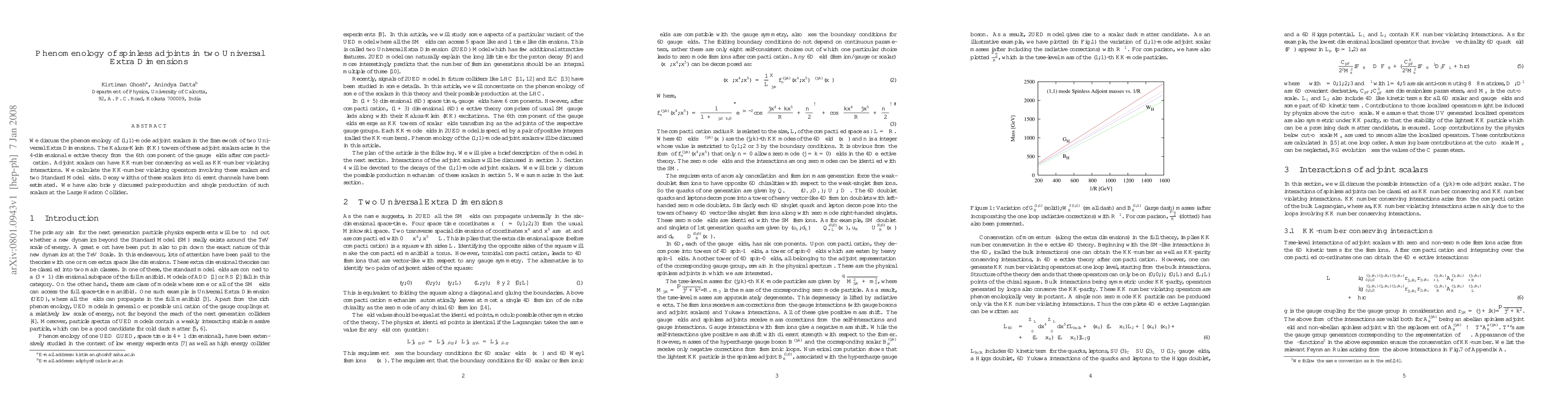 This paper explores the phenomenology of $(1,1)$-mode adjoint scalars in a two Universal Extra Dimensions model, detailing their interactions, decay widths, and production mechanisms at the Large Hadron Collider, including both KK-number conserving and violating processes.