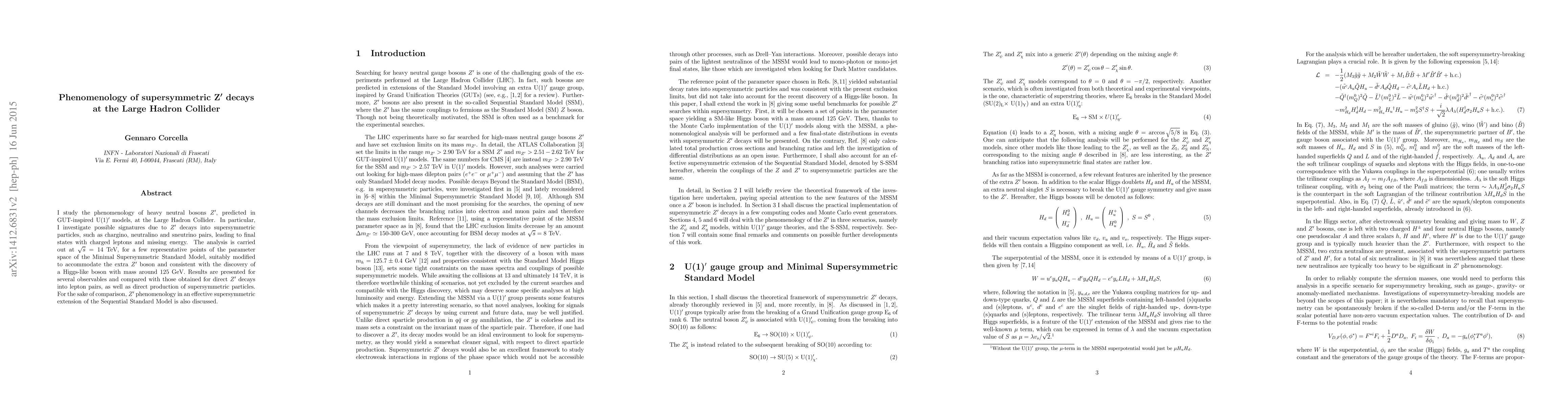 This paper examines the decay signatures of heavy neutral bosons Z' in GUT-inspired U(1)' models at the LHC, focusing on Z' decays into supersymmetric particles like charginos and neutralinos, and compares these with direct Z' decays and direct production of supersymmetric particles. Results are analyzed for various observables at 14 TeV.
