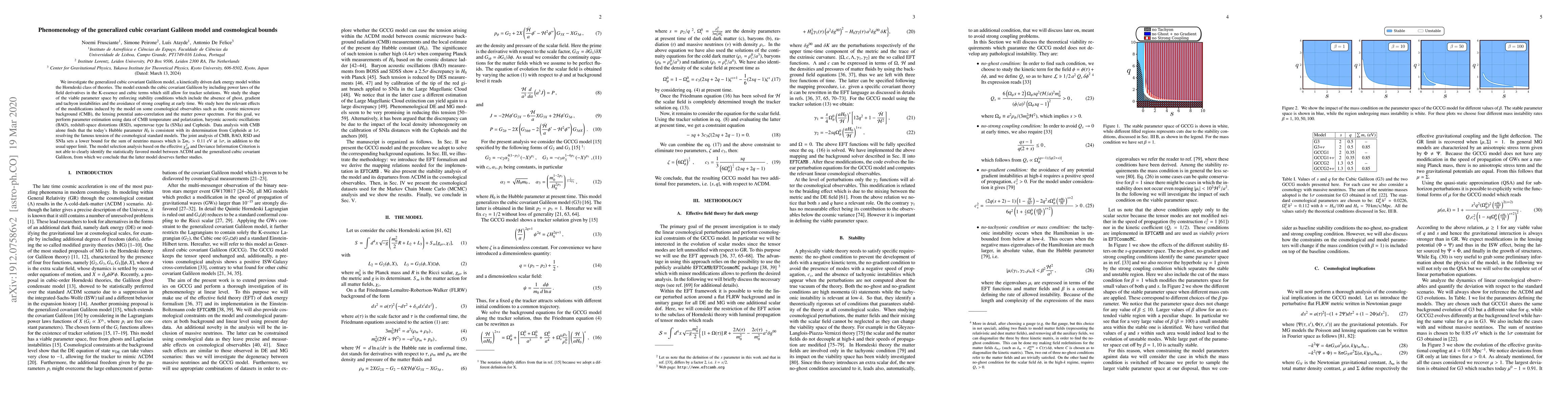 The generalized cubic covariant Galileon model provides a consistent cosmological framework that resolves the Hubble tension between Cepheids and the cosmic microwave background, while setting a lower bound on neutrino masses.