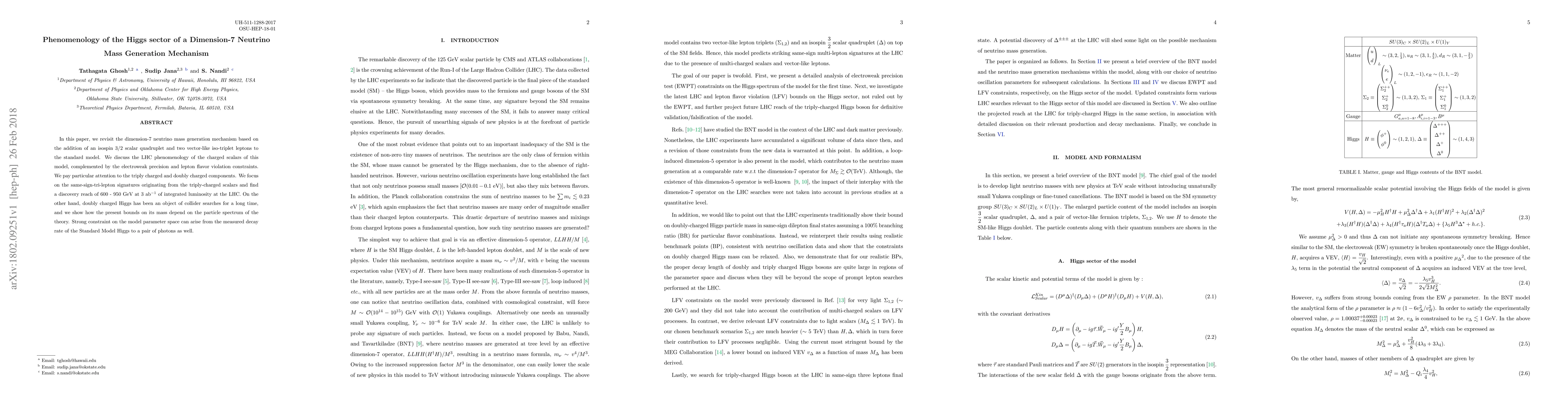 In this paper, we revisit the dimension-7 neutrino mass generation mechanism based on the addition of an isospin $3/2$ scalar quadruplet and two vector-like iso-triplet leptons to the standard model. We discuss the LHC phenomenology of the charged scalars of this model, complemented by the electroweak precision and lepton flavor violation constraints. We pay particular attention to the triply charged and doubly charged components. We focus on the same-sign-tri-lepton signatures originating from the triply-charged scalars and find a discovery reach of 600 - 950 GeV at 3 ab$^{-1}$ of integrated luminosity at the LHC. On the other hand, doubly charged Higgs has been an object of collider searches for a long time, and we show how the present bounds on its mass depend on the particle spectrum of the theory. Strong constraint on the model parameter space can arise from the measured decay rate of the Standard Model Higgs to a pair of photons as well.
