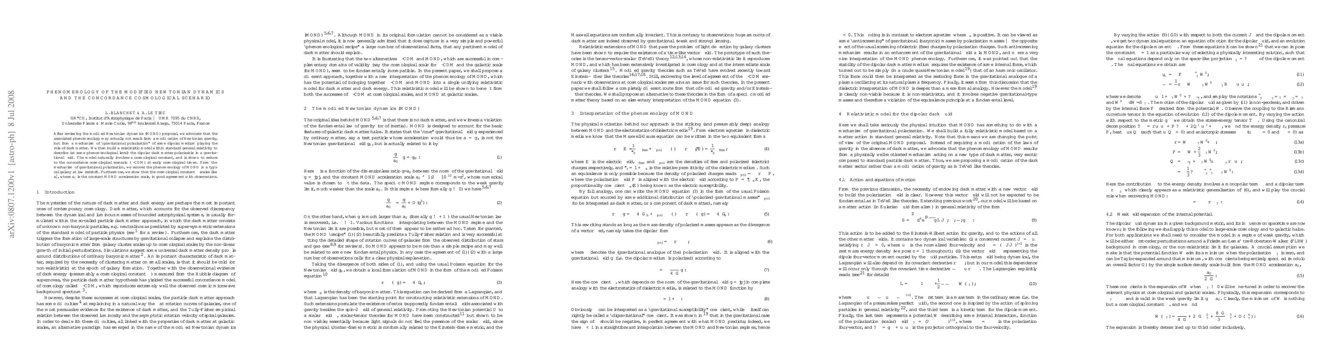 After reviewing the modified Newtonian dynamics (MOND) proposal, we advocate that the associated phenomenology may actually not result from a modification of Newtonian gravity, but from a mechanism of "gravitational polarization" of some dipolar medium playing the role of dark matter. We then build a relativistic model within standard general relativity to describe (at some phenomenological level) the dipolar dark matter polarizable in a gravitational field. The model naturally involves a cosmological constant, and is shown to reduce to the concordance cosmological scenario (Lambda-CDM) at early cosmological times. From the mechanism of gravitational polarization, we recover the phenomenology of MOND in a typical galaxy at low redshift. Furthermore, we show that the cosmological constant Lambda scales like a0^2, where a0 is the constant MOND acceleration scale, in good agreement with observations.