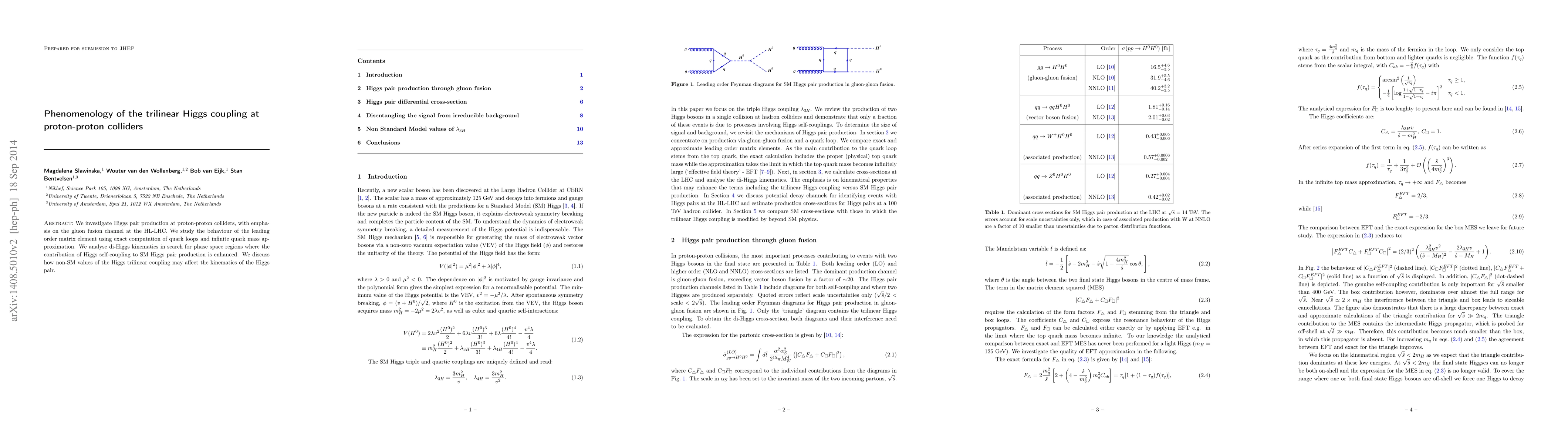 This paper examines Higgs pair production via gluon fusion at proton-proton colliders, focusing on the HL-LHC. It analyzes the leading order matrix element for SM Higgs pair production, exploring potential enhancements in phase space due to the Higgs trilinear coupling.