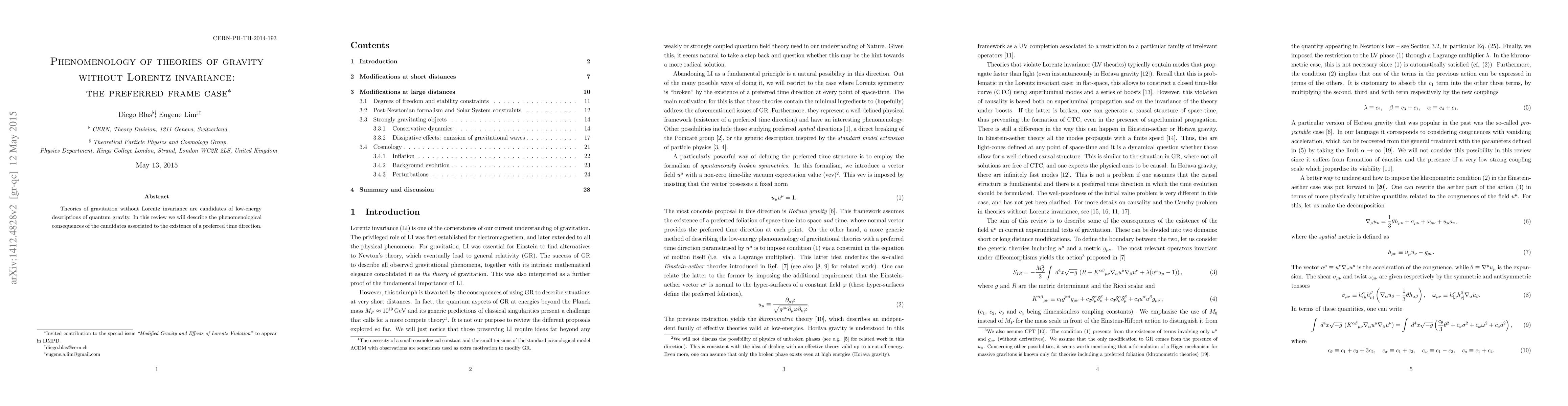 This paper reviews the phenomenological implications of gravity theories that lack Lorentz invariance, focusing on models with a preferred time direction as potential low-energy quantum gravity descriptions. It examines how these theories differ from standard relativity and their observable consequences.