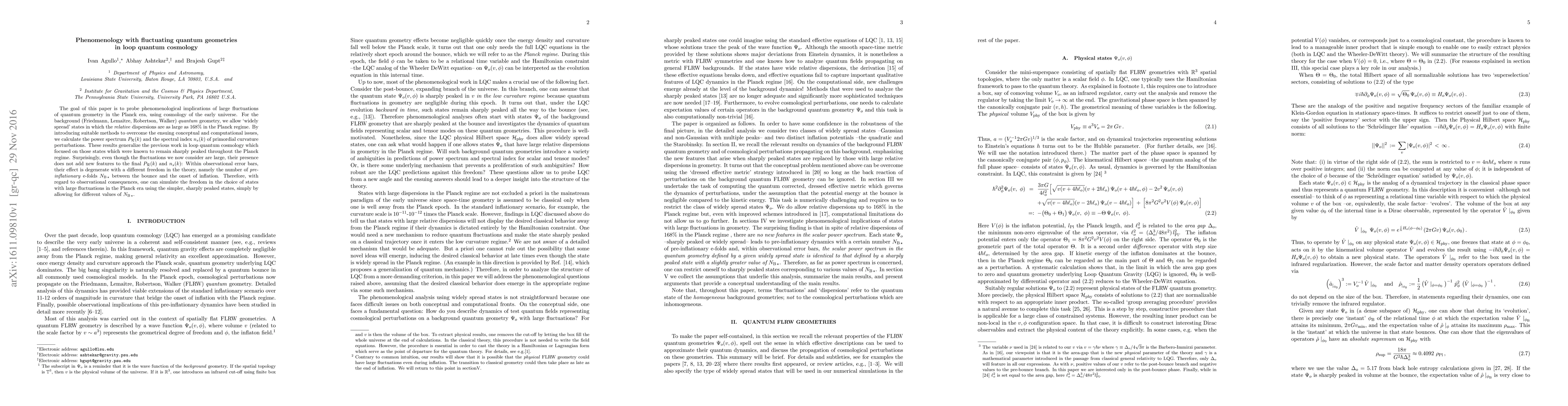 The goal of this paper is to probe phenomenological implications of large fluctuations of quantum geometry in the Planck era, using cosmology of the early universe. For the background (Friedmann, Lema\^{i}tre, Robertson, Walker) \emph{quantum} geometry, we allow `widely spread' states in which the \emph{relative} dispersions are as large as $168\%$ in the Planck regime. By introducing suitable methods to overcome the ensuing conceptual and computational issues, we calculate the power spectrum $P_{\mathcal{R}}(k)$ and the spectral index $n_s(k)$ of primordial curvature perturbations. These results generalize the previous work in loop quantum cosmology which focused on those states which were known to remain sharply peaked throughout the Planck regime. Surprisingly, even though the fluctuations we now consider are large, their presence does not add new features to the final $P_{\mathcal{R}}(k)$ and $n_s(k)$: Within observational error bars, their effect is degenerate with a different freedom in the theory, namely the number of \emph{pre-inflationary} e-folds $N_{{\rm B}\,\star}$ between the bounce and the onset of inflation. Therefore, with regard to observational consequences, one can simulate the freedom in the choice of states with large fluctuations in the Planck era using the simpler, sharply peaked states, simply by allowing for different values of $N_{{\rm B}\,\star}$.