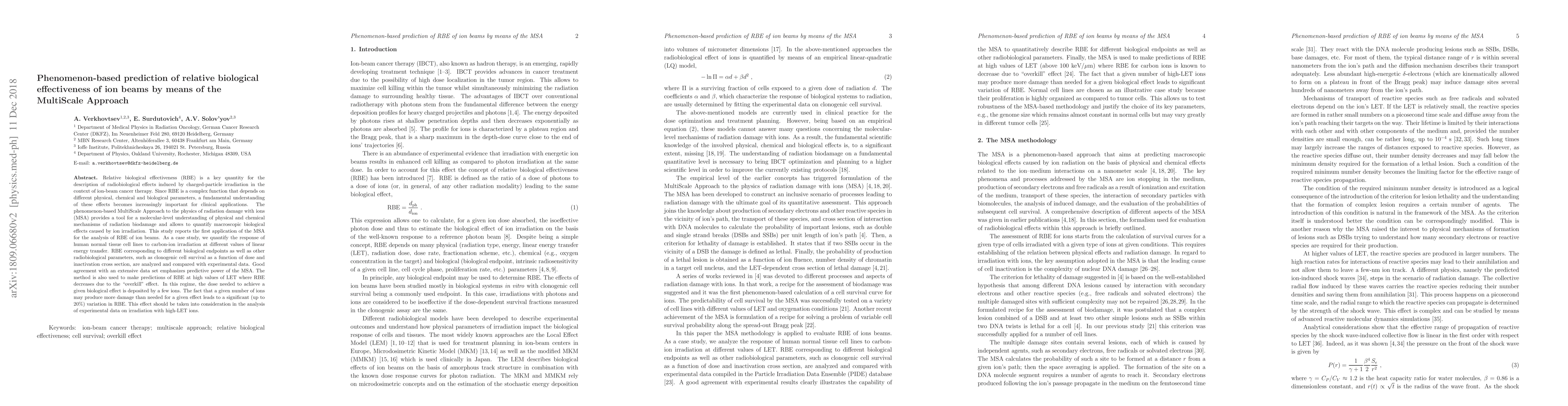 This paper introduces the MultiScale Approach (MSA) to predict the relative biological effectiveness (RBE) of ion beams in cancer therapy, demonstrating its application to carbon-ion irradiation of human normal tissue cells. The MSA accurately quantifies RBE and other radiobiological parameters, highlighting the "overkill" effect where high linear energy transfer (LET) ions cause significant RBE variation.