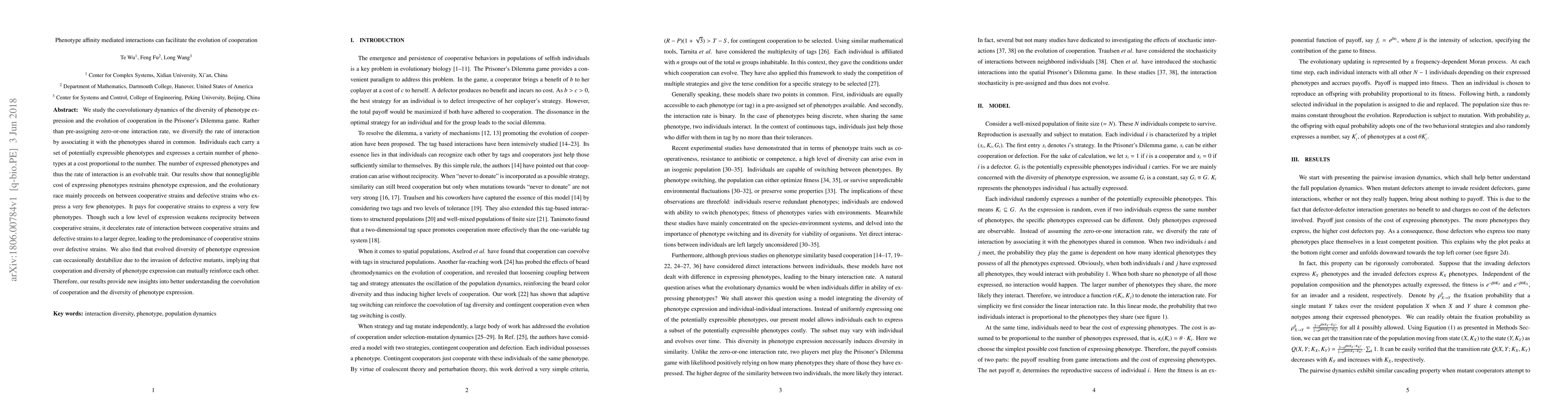 This research explores how cooperation evolves in the Prisoner's Dilemma game, focusing on the coevolution of phenotype diversity and cooperative behavior. Individuals express phenotypes at a cost, influencing interaction rates; non-negligible expression costs limit phenotype diversity. Cooperation thrives when expressing few phenotypes, despite reduced reciprocity, as it slows interaction with defectors. Phenotype diversity can occasionally wane due to defective mutants, suggesting a mutual reinforcement between cooperation and diversity.