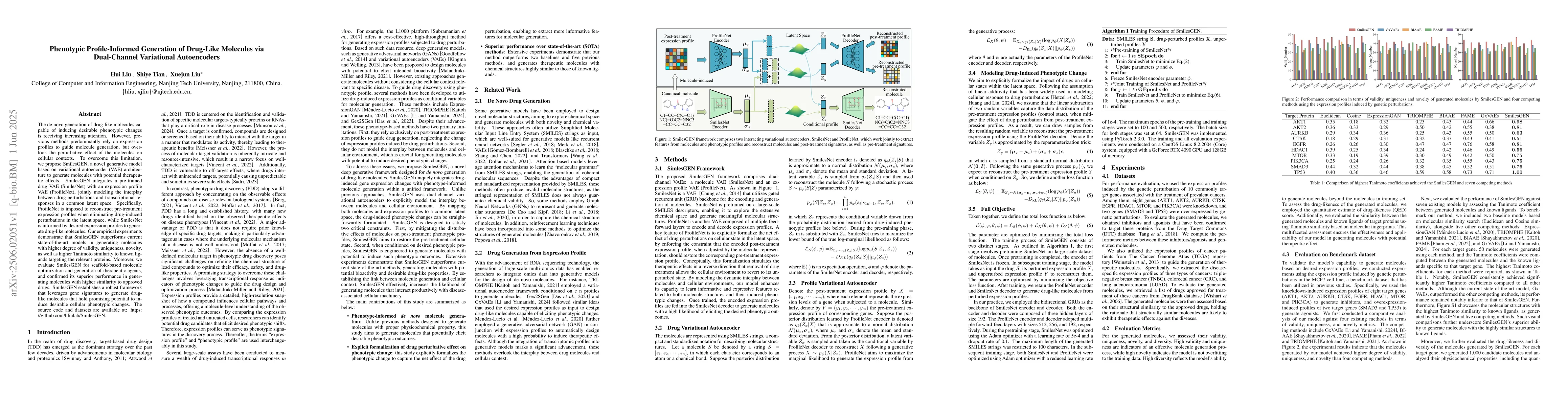The research proposes SmilesGEN, a generative model based on dual-channel variational autoencoders (VAEs) integrating SmilesNet (drug VAE) and ProfileNet (expression profile VAE). SmilesGEN models the interplay between drug perturbations and transcriptional responses in a shared latent space, with ProfileNet reconstructing pre-treatment profiles by removing drug-induced changes and SmilesNet generating drug-like molecules informed by desired expression profiles.