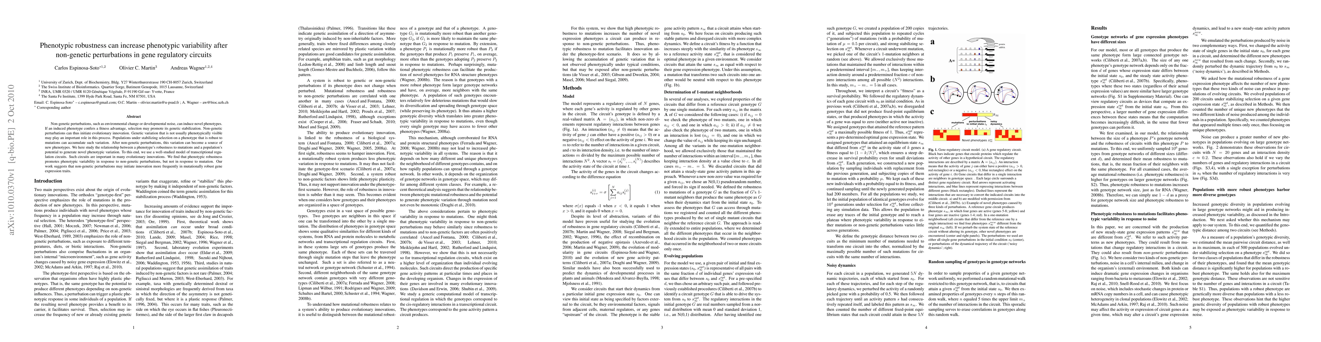 This paper investigates how phenotypic robustness to mutations influences the generation of novel phenotypic variation in response to non-genetic perturbations in gene regulatory circuits. The study shows that robust phenotypes can increase variability after environmental changes, suggesting that such perturbations may frequently initiate evolutionary innovation in robust traits.