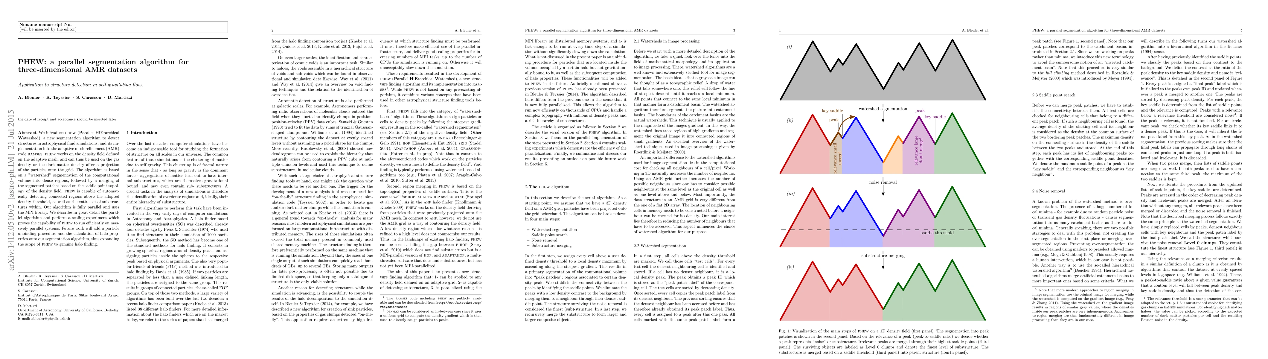 We introduce PHEW (Parallel HiErarchical Watershed), a new segmentation algorithm to detect structures in astrophysical fluid simulations, and its implementation into the adaptive mesh refinement (AMR) code ramses. PHEW works on the density field defined on the adaptive mesh, and can thus be used on the gas density or the dark matter density after a projection of the particles onto the grid. The algorithm is based on a "watershed" segmentation of the computational volume into dense regions, followed by a merging of the segmented patches based on the saddle point topology of the density field. PHEW is capable of automatically detecting connected regions above the adopted density threshold, as well as the entire set of substructures within. Our algorithm is fully parallel and uses the MPI library. We describe in great detail the parallel algorithm and perform a scaling experiment which proves the capability of phew to run efficiently on massively parallel systems.